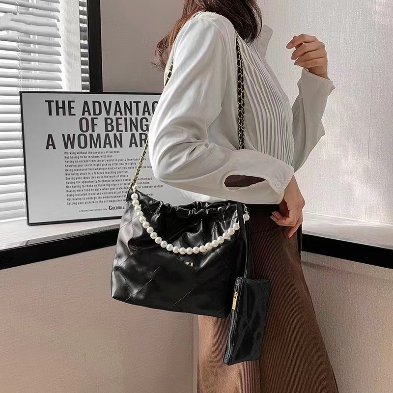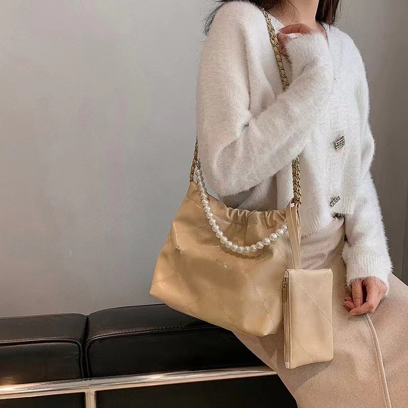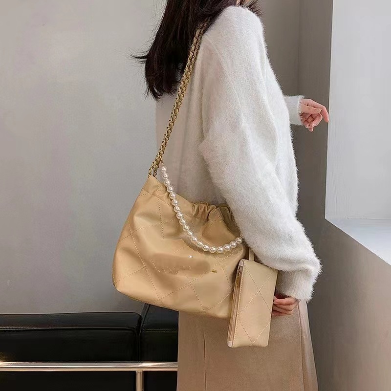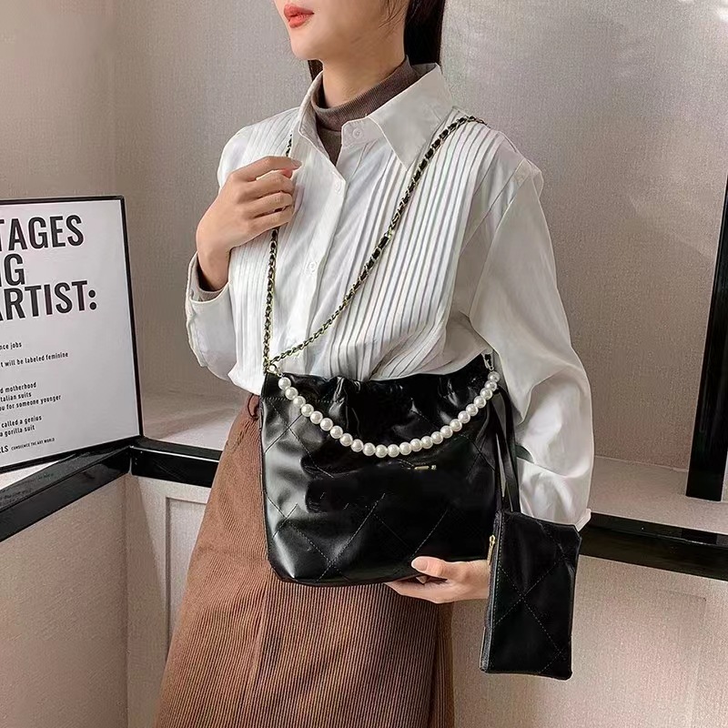 小香风女包秋冬新款单肩斜挎链条包两件套百搭绣线珍珠腋下包批发