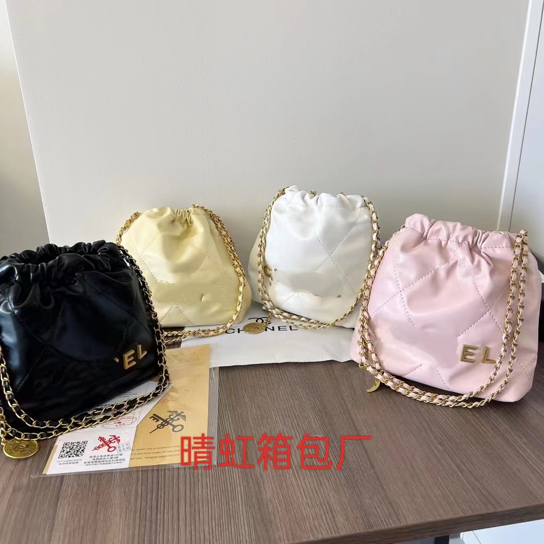 小香风菱格链条包包女2023夏mini垃圾袋包通勤单肩斜跨包小水桶包
