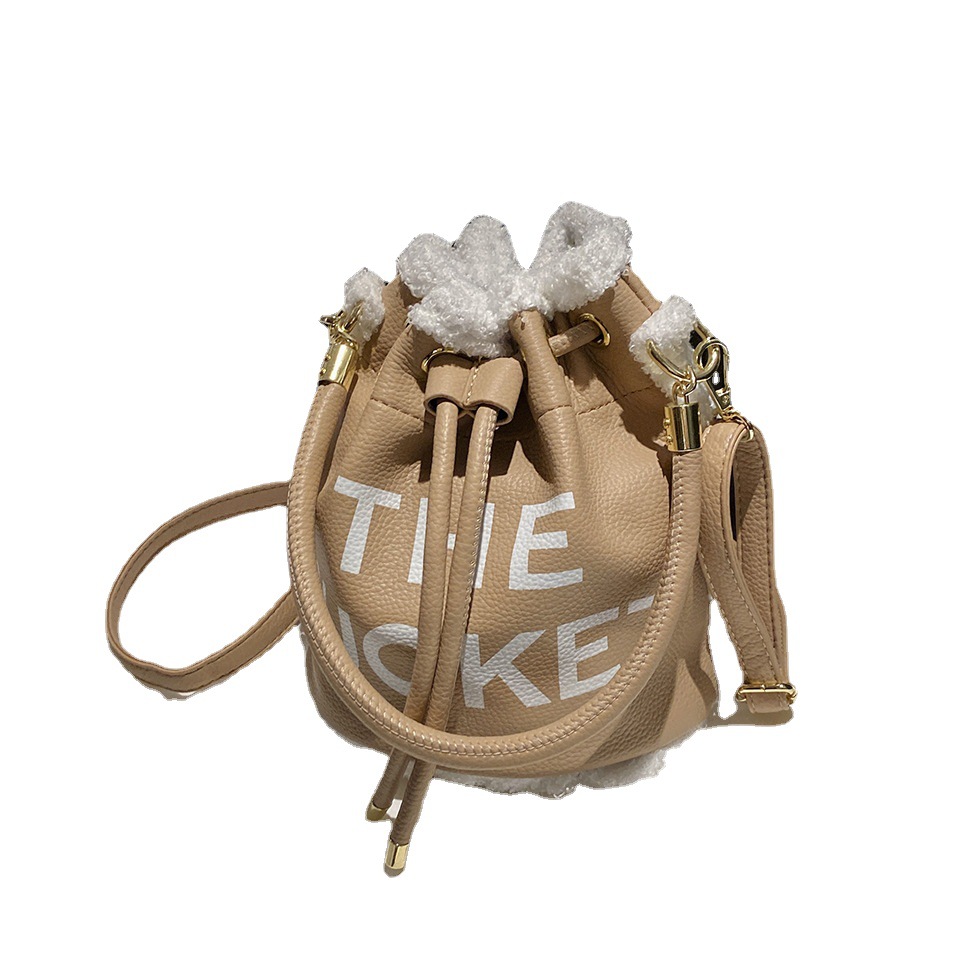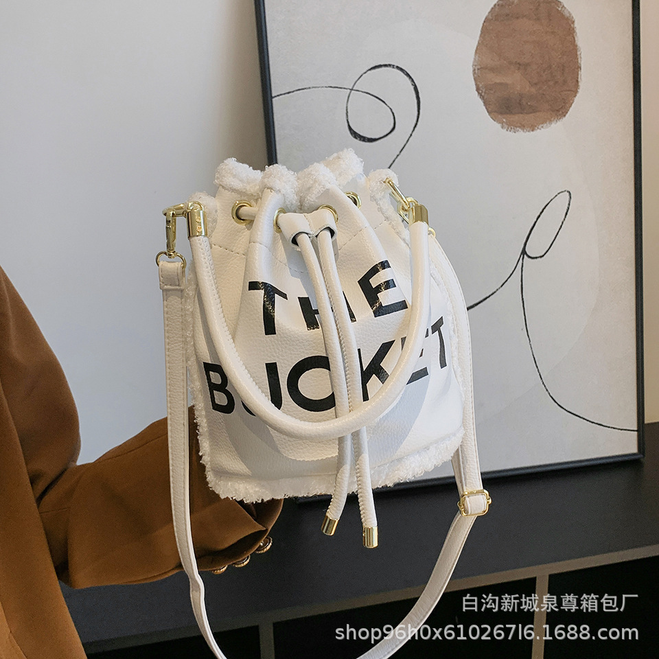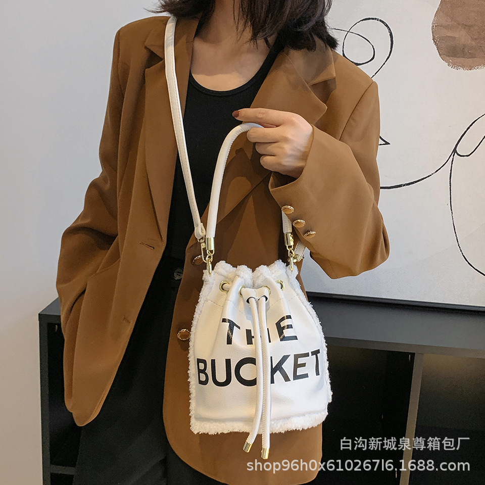 跨境秋冬新款大号毛绒水桶包毛边包大容量单肩包斜挎包字母包欧美