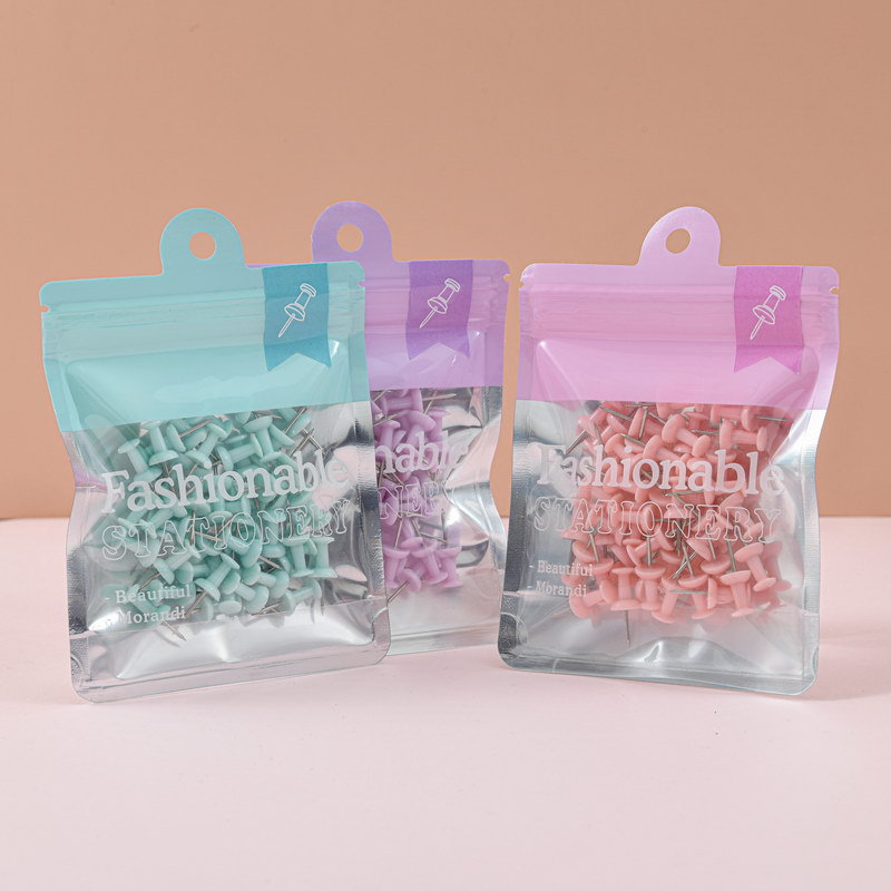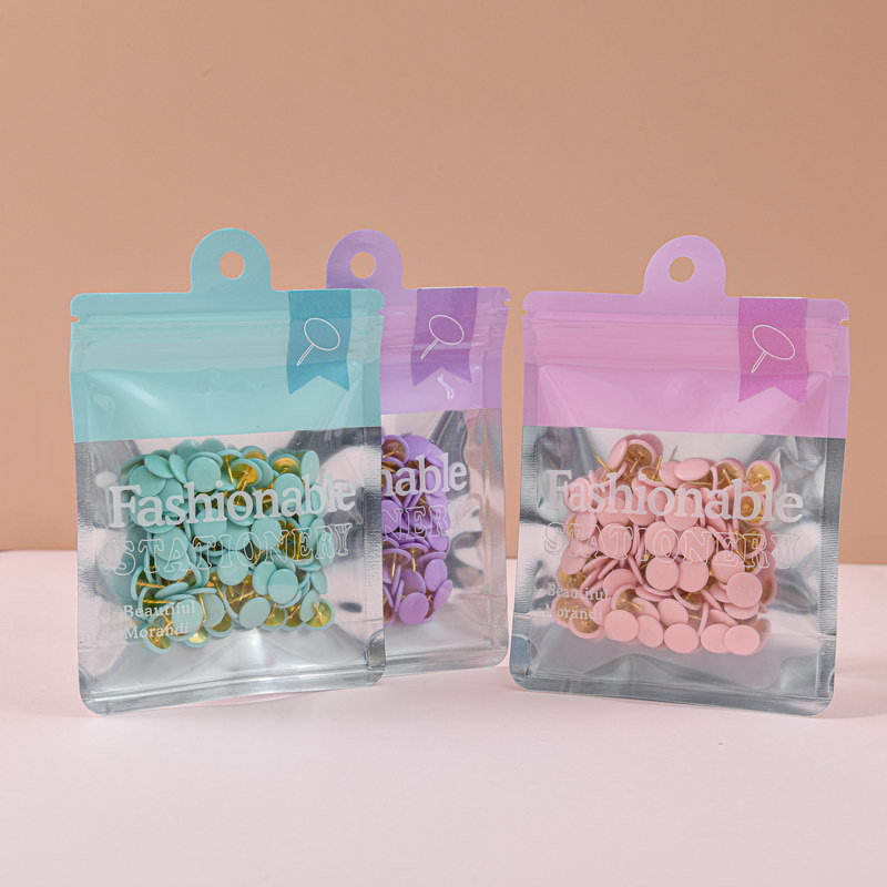 新款马卡龙色办公套装高颜值袋装长尾夹回形针省力装订图钉曲别针