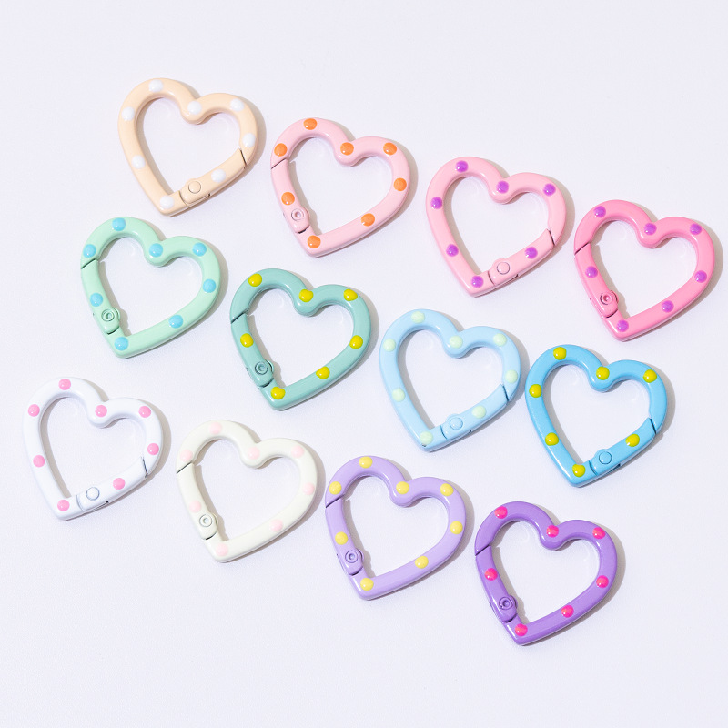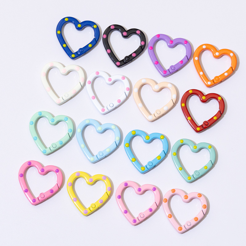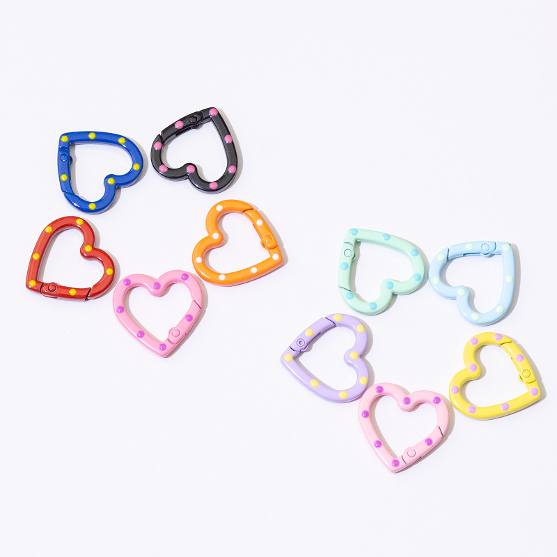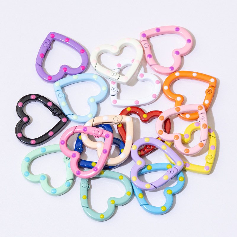 烤漆手绘桃心弹簧扣爱心开口环弹簧圈钥匙扣DIY配件合金连接环