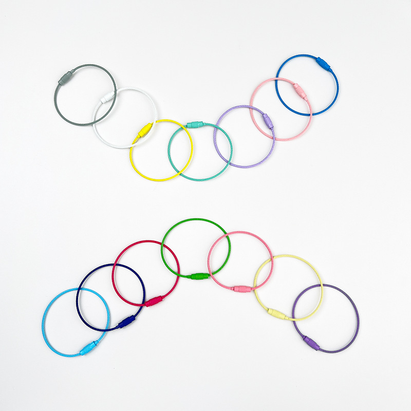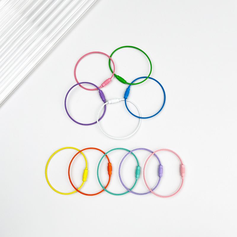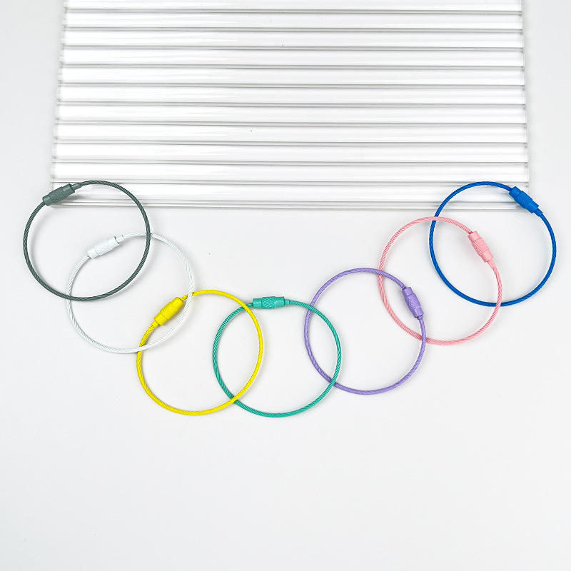 彩色喷漆钢丝圈钥匙圈钢丝绳钥匙扣开口圈公仔挂件圈DIY饰品配件