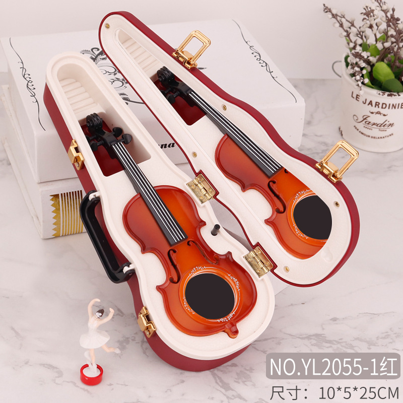YL2055创意仿真小号小提琴音乐盒 旋转芭蕾舞女孩八音盒女生礼物
