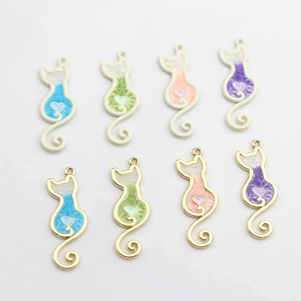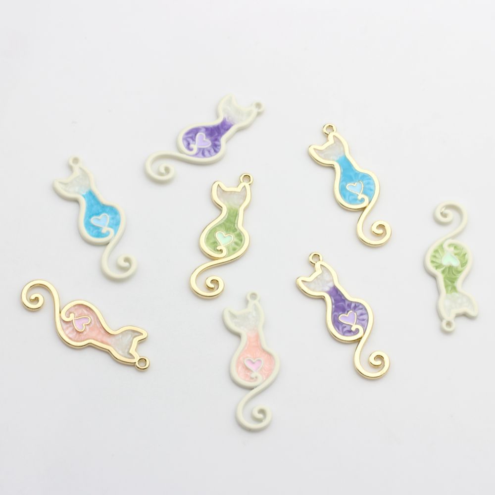 韩版合金滴油小猫时尚可爱糖果色小吊坠 diy饰品耳环材料配件