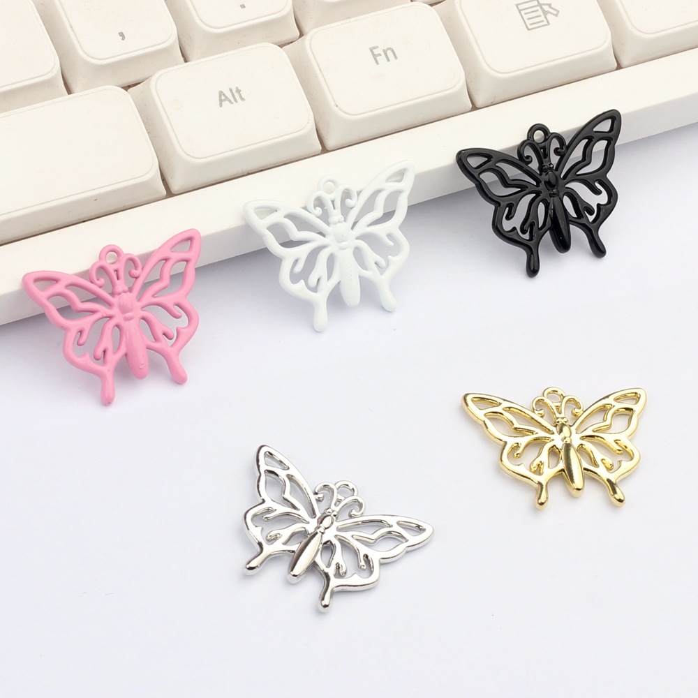 韩版时尚复古合金彩色喷漆蝴蝶镂空创意小吊坠DIY饰品材料配件