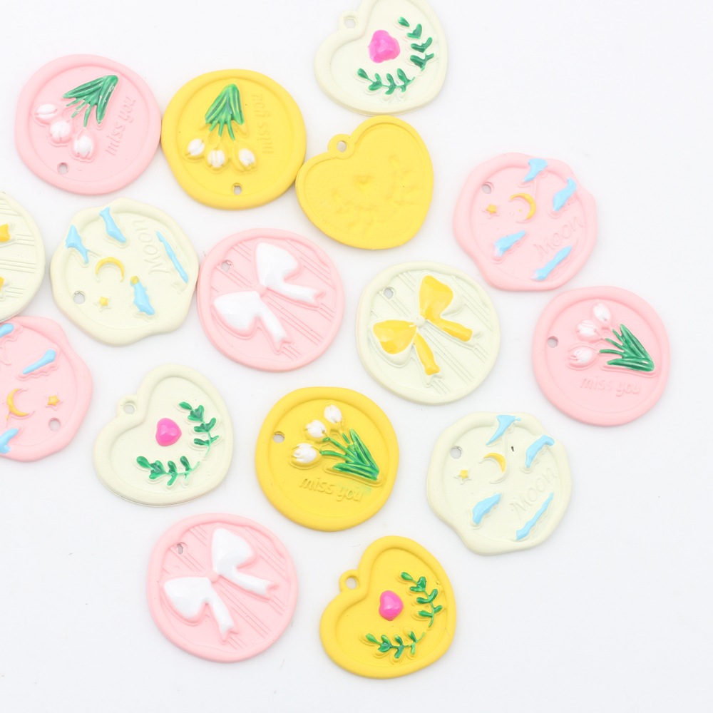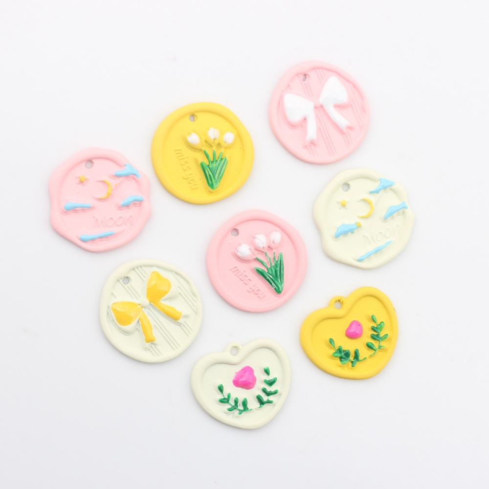 春日时尚创意合金彩色滴油花朵浮雕爱心饰品DIY饰品吊坠配件批发