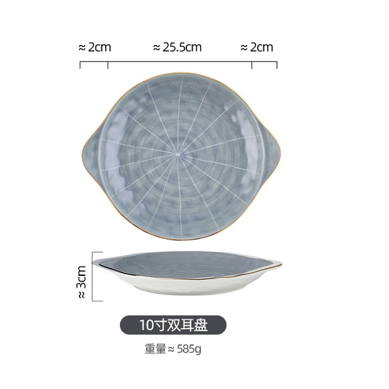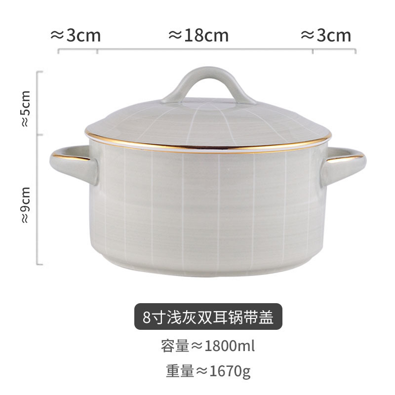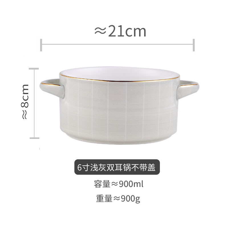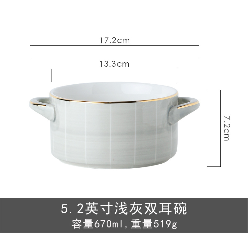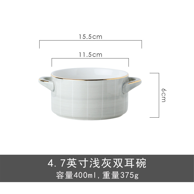 餐具双耳带盖大汤碗陶瓷餐具轻奢金边欧式汤盆大号泡面碗炖盅
