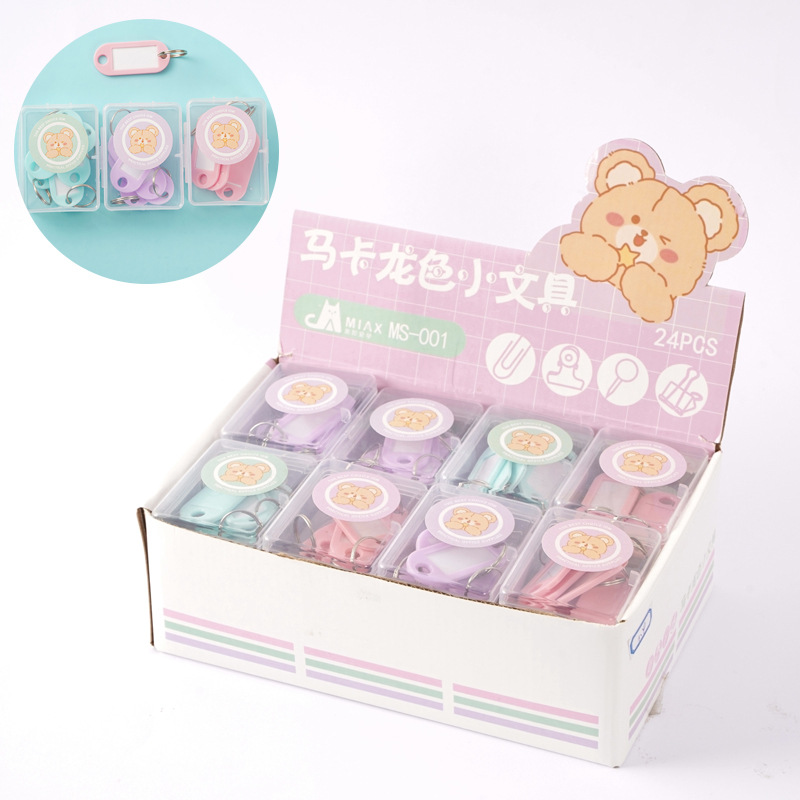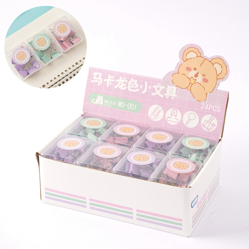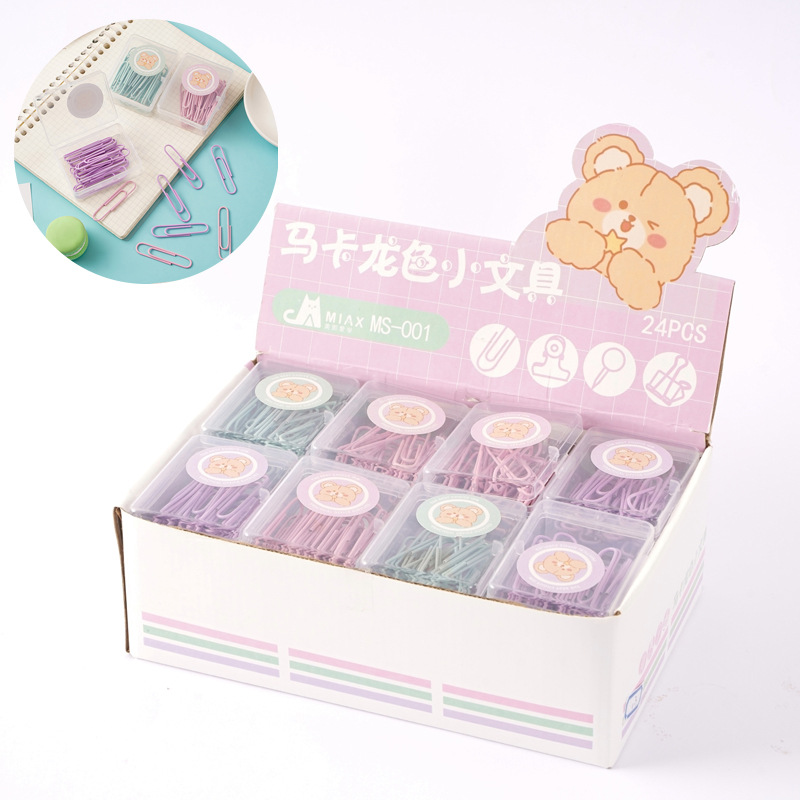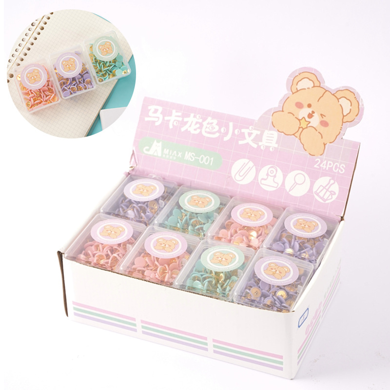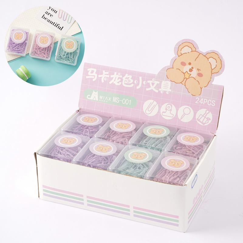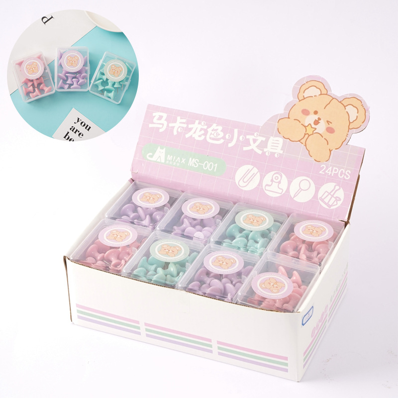 马卡龙色盒装回形针长尾夹套装批发可爱小熊票夹图钉别针装订文具