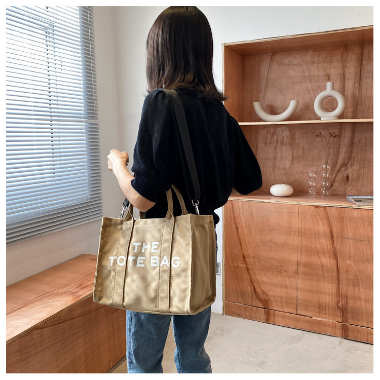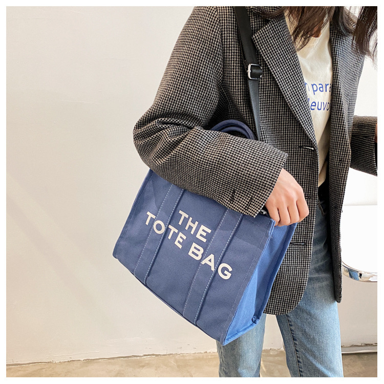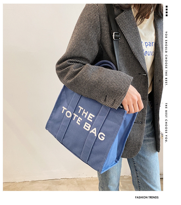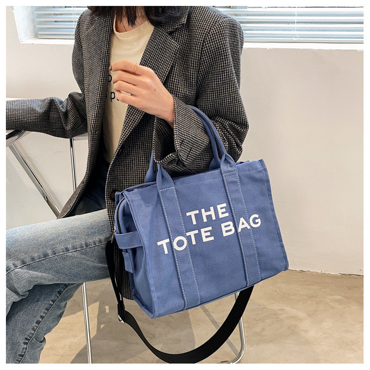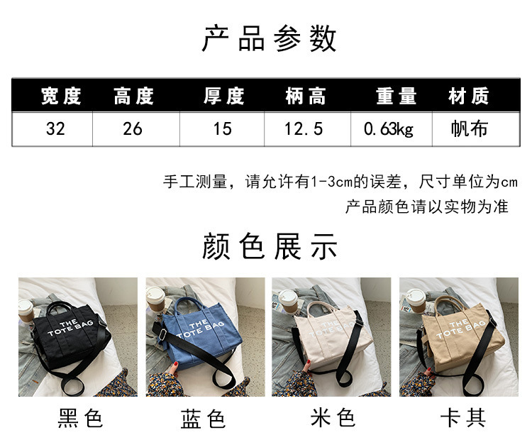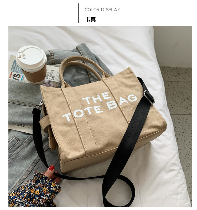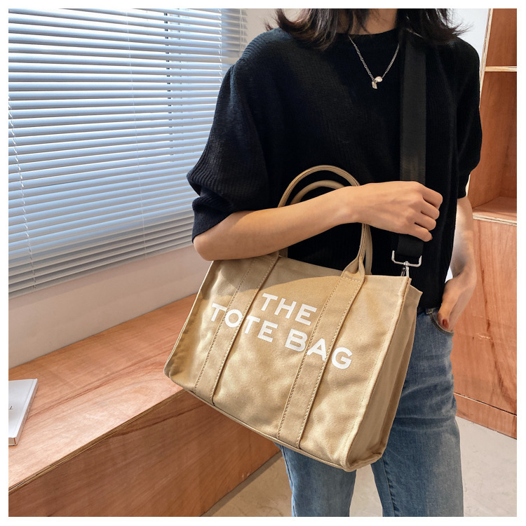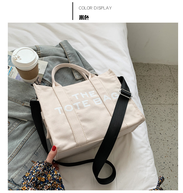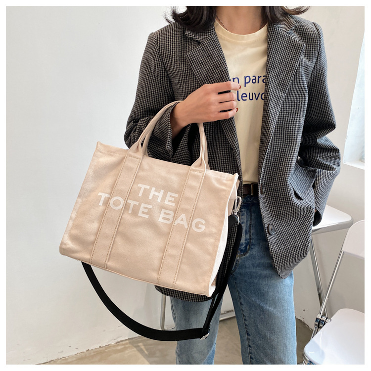 女包新款韩版简约时尚斜挎包文艺范字母印花托特包帆布单肩包女