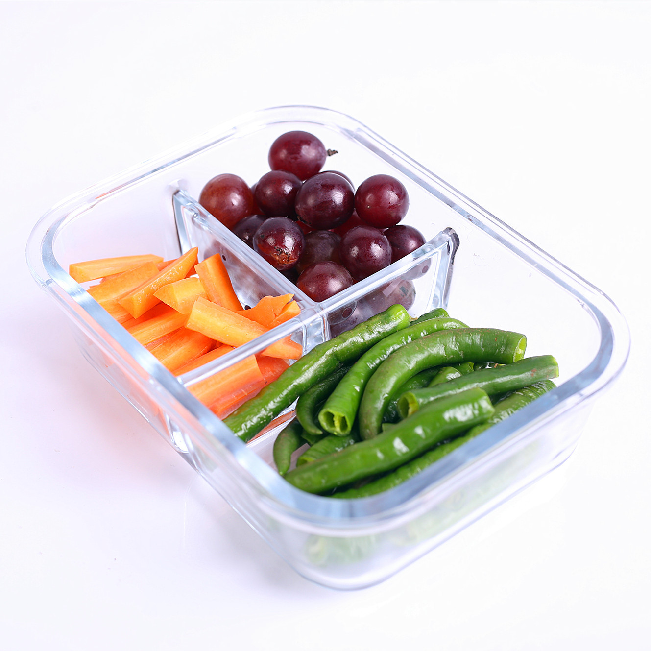 批发高硼硅玻璃饭盒微波炉烤箱可用碗分隔保鲜盒密封便当盒带盖
