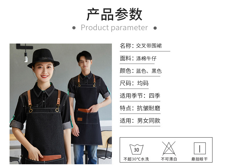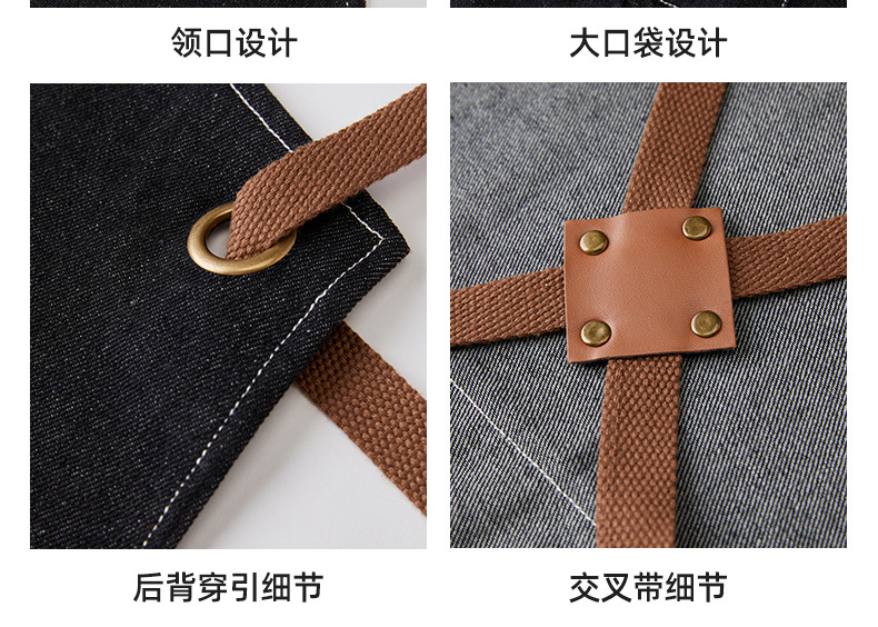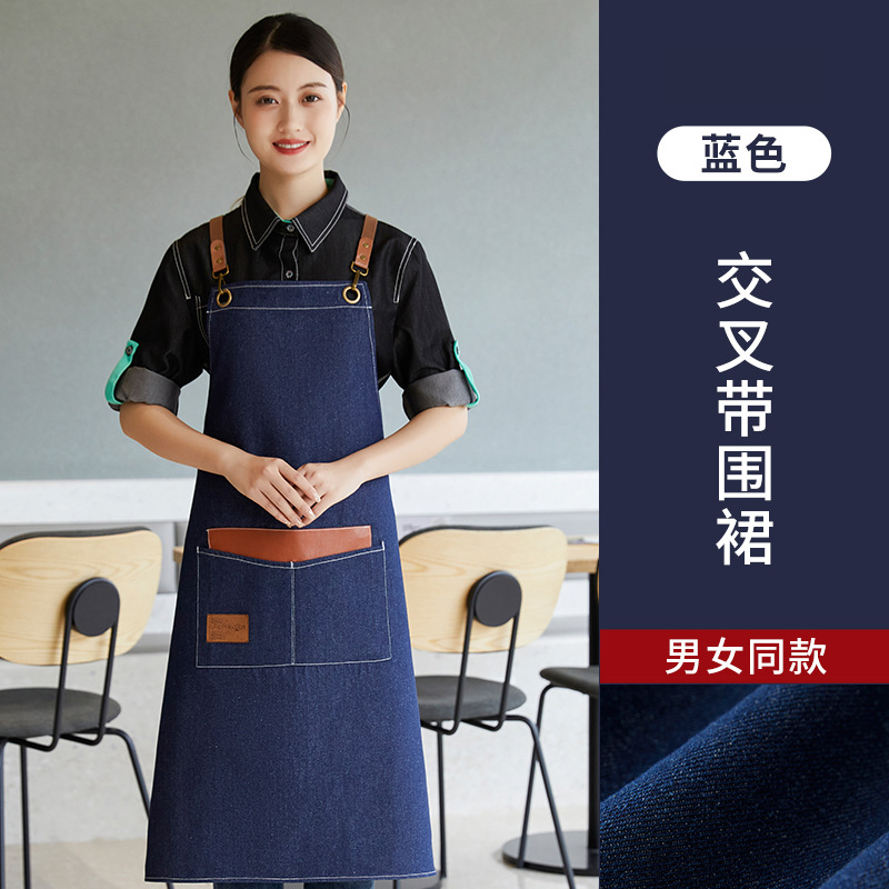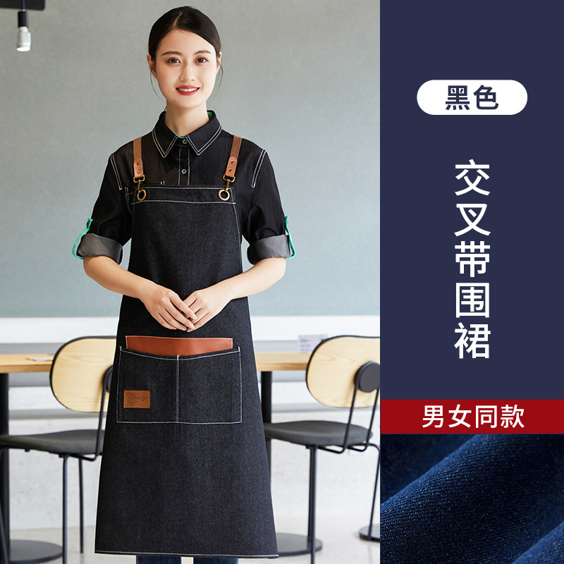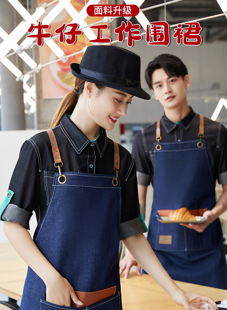 咖啡店花店花艺师美发师餐厅工作服定 制印logo韩版加厚牛仔围裙