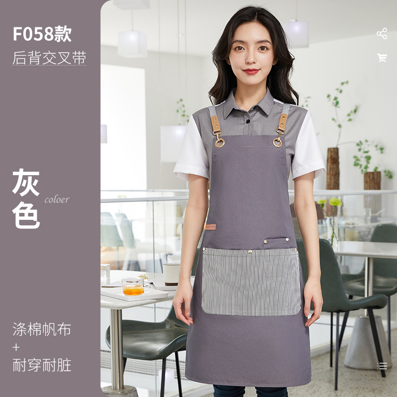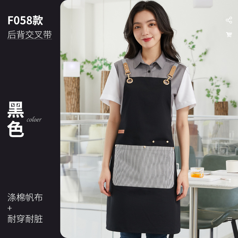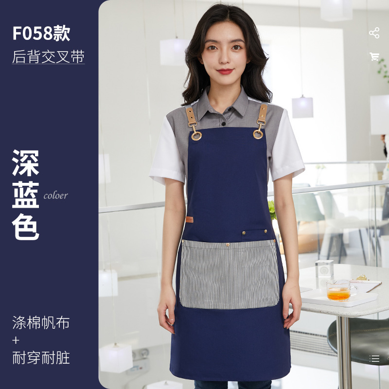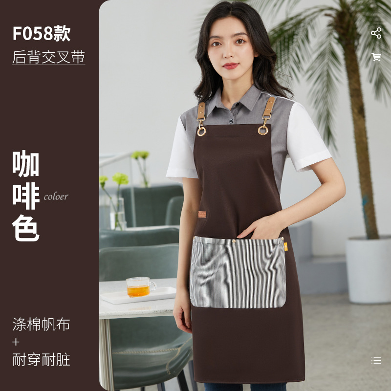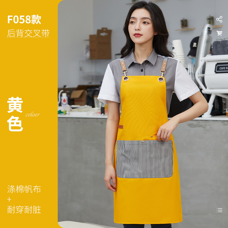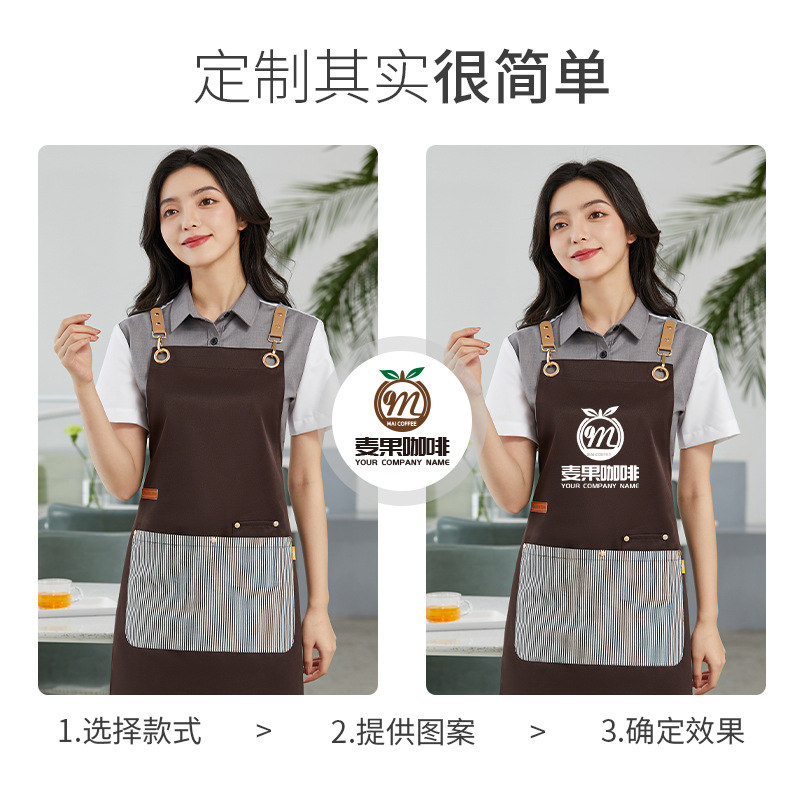 新款韩版围裙工作服印字logo涤棉帆布拼色围腰奶茶咖啡酒店工衣女
