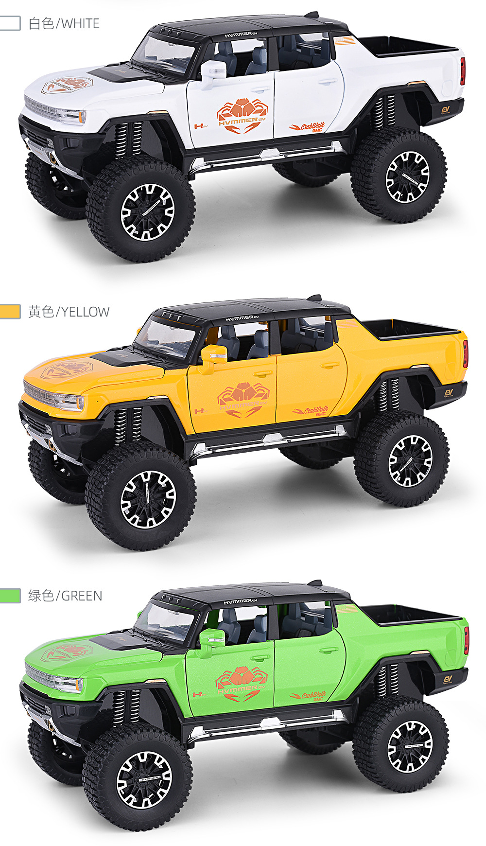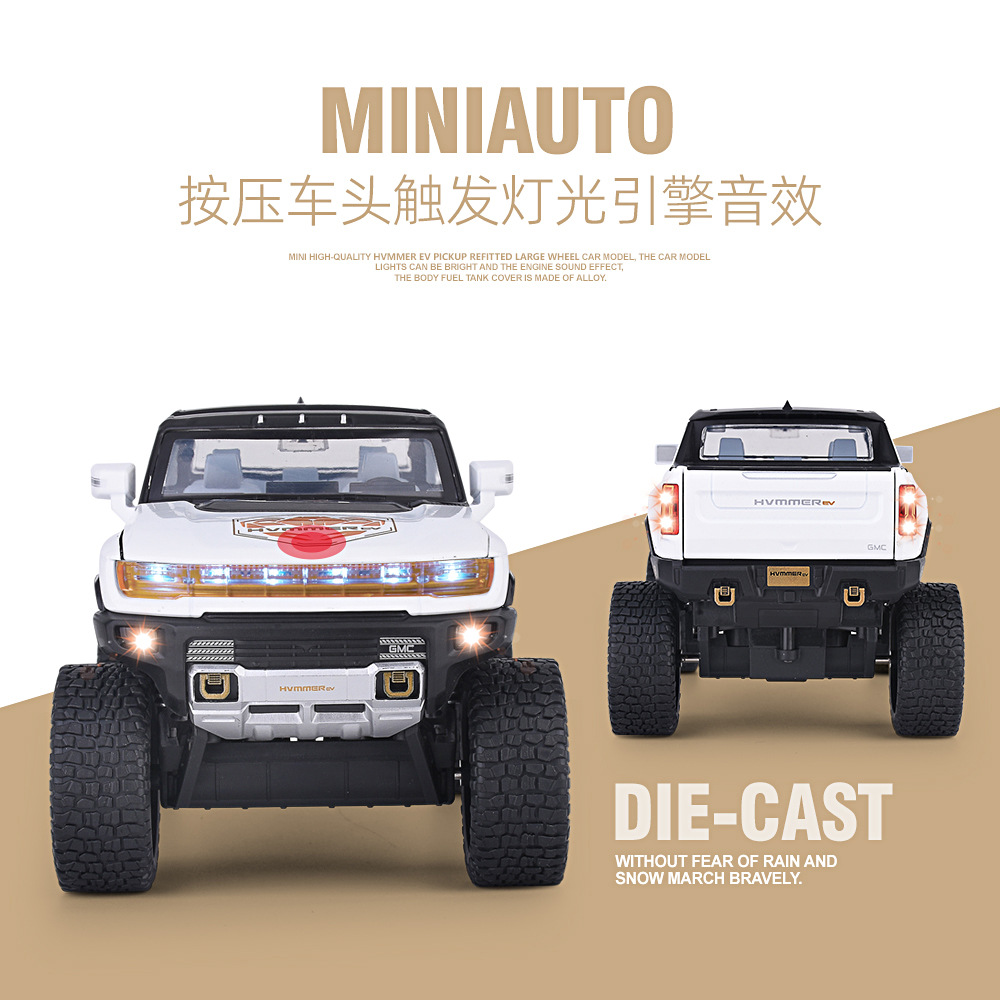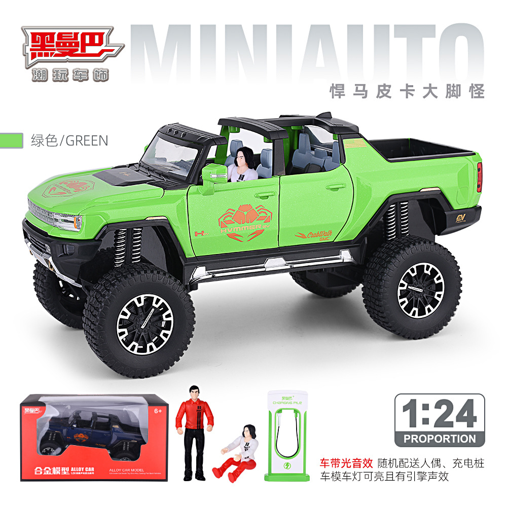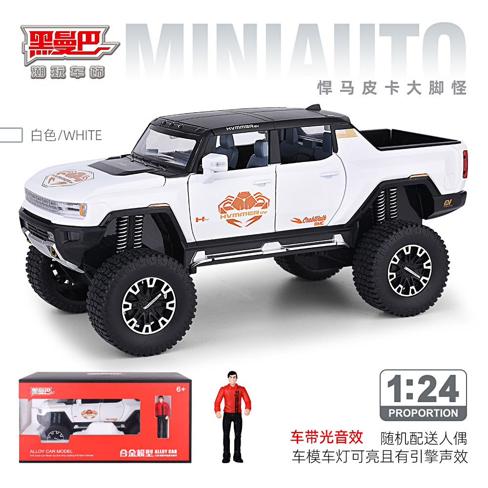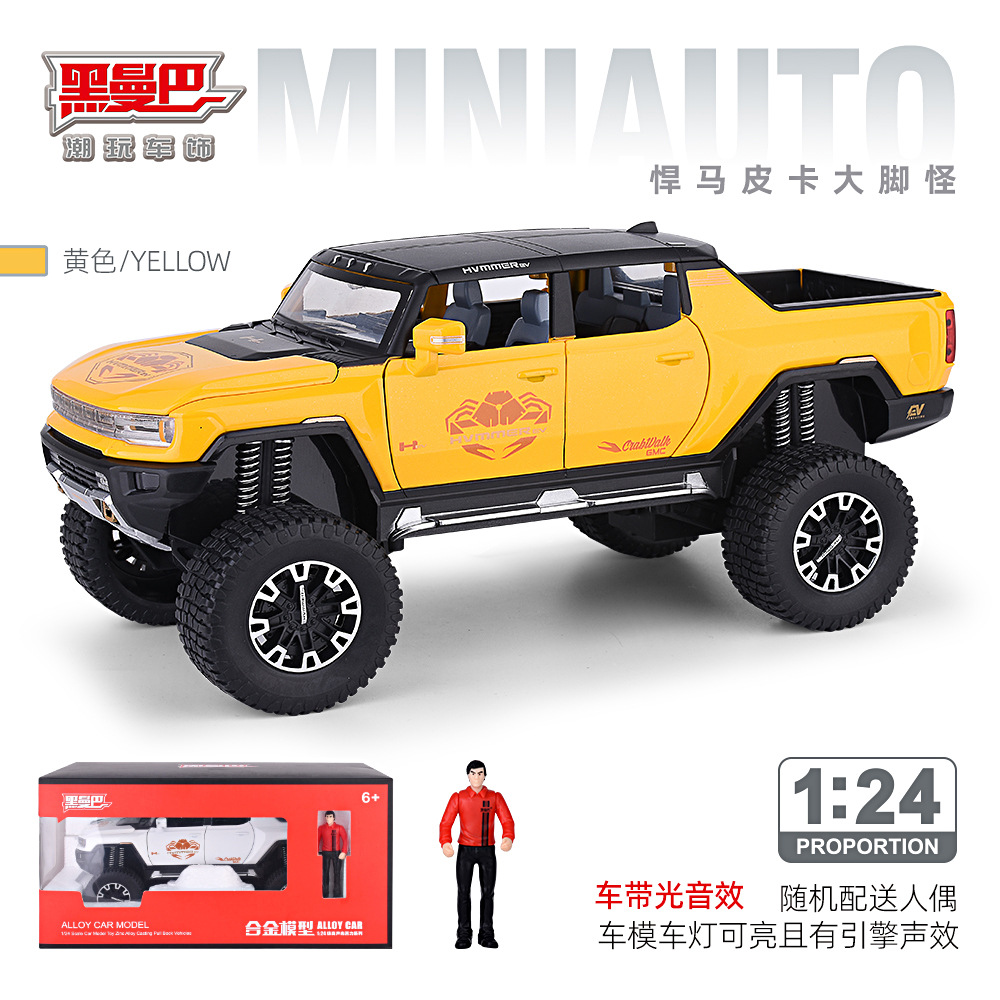1:24大轮悍马SUV越野车密蓬或敞篷回力声光模型合金玩具仿真车模