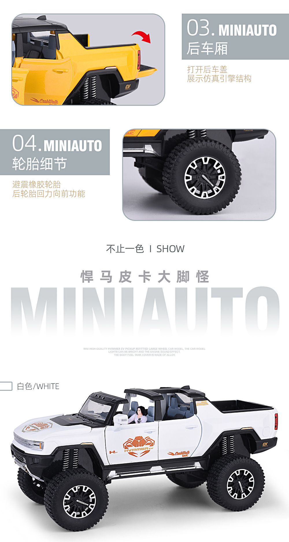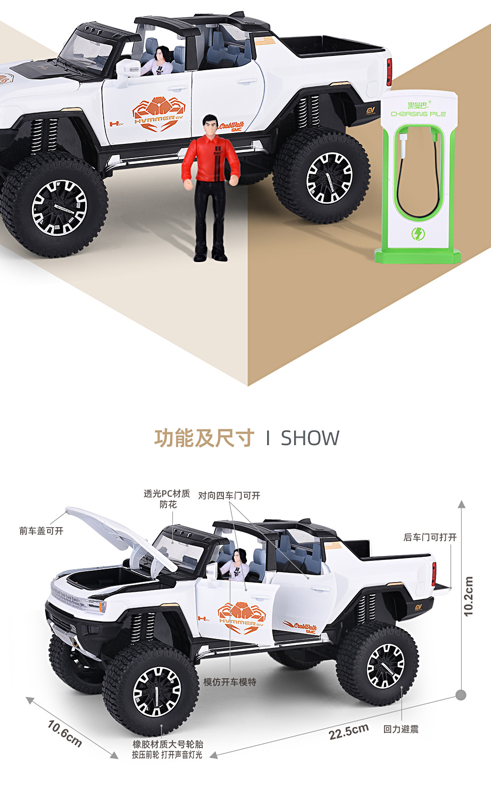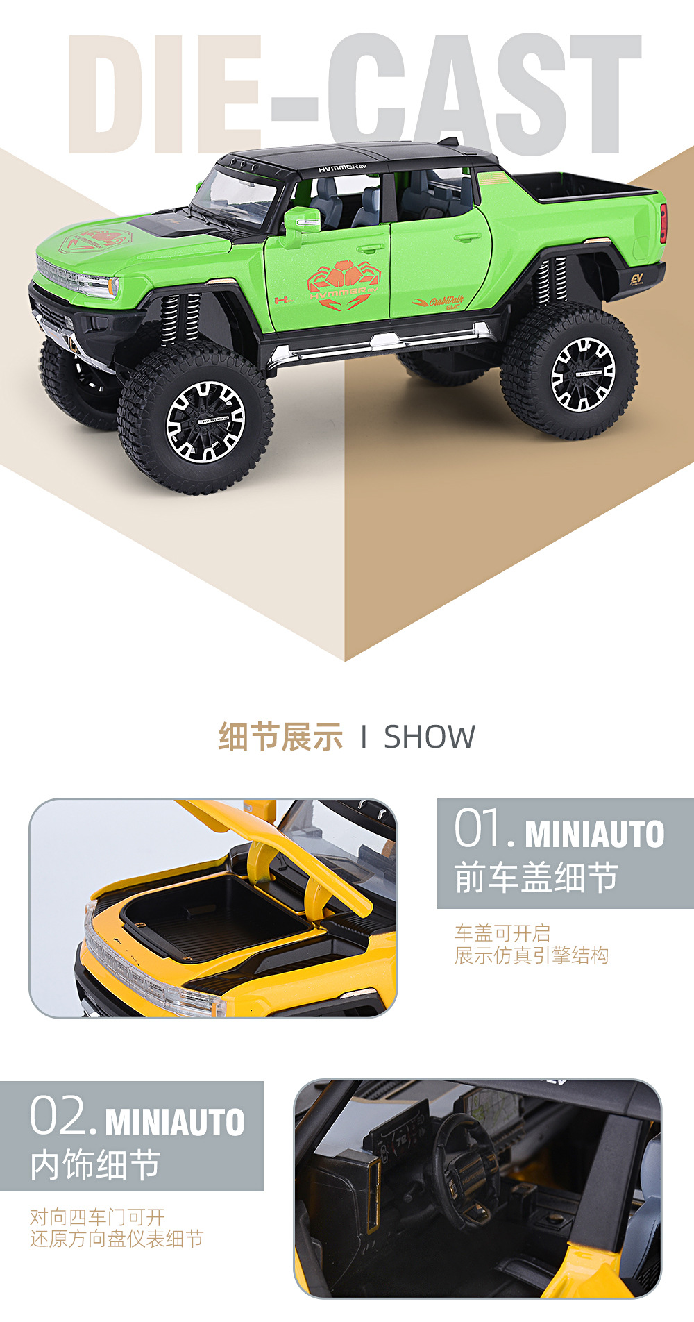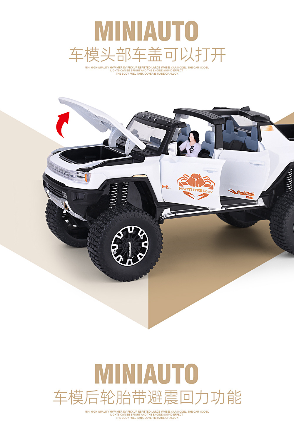 1:24大轮悍马SUV越野车密蓬或敞篷回力声光模型合金玩具仿真车模