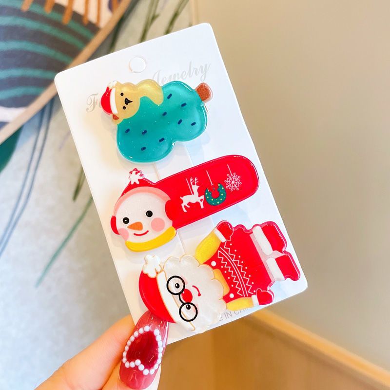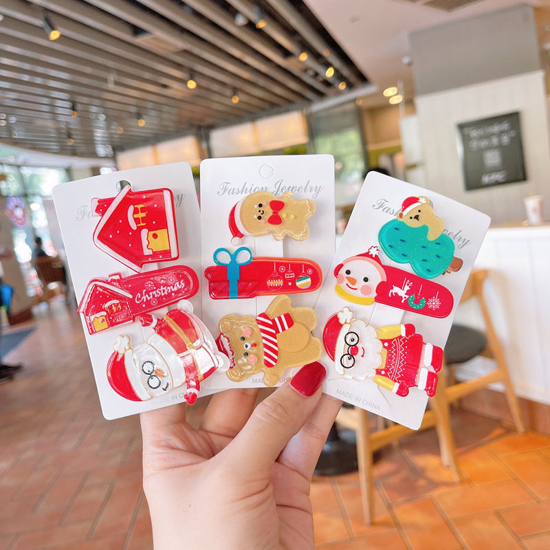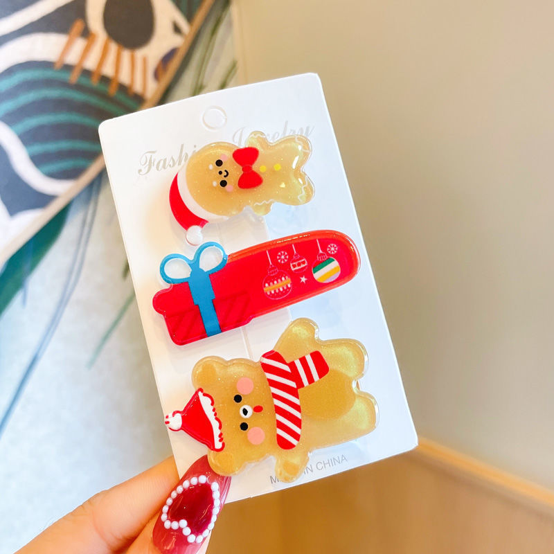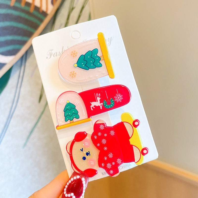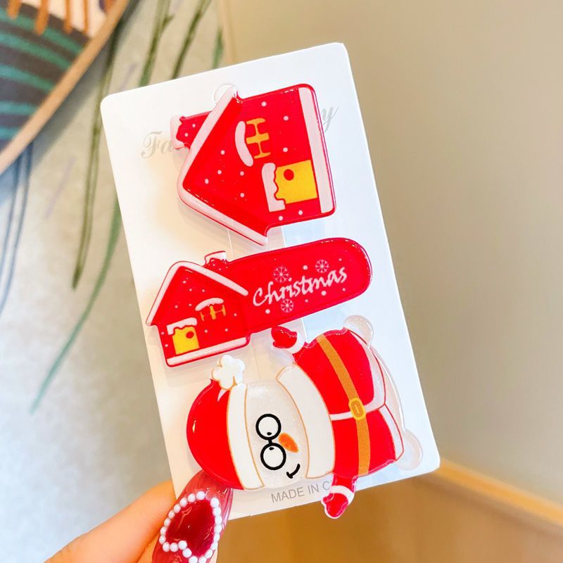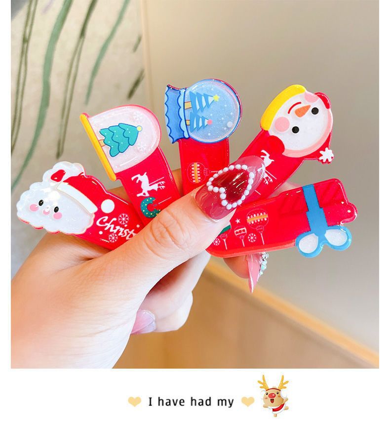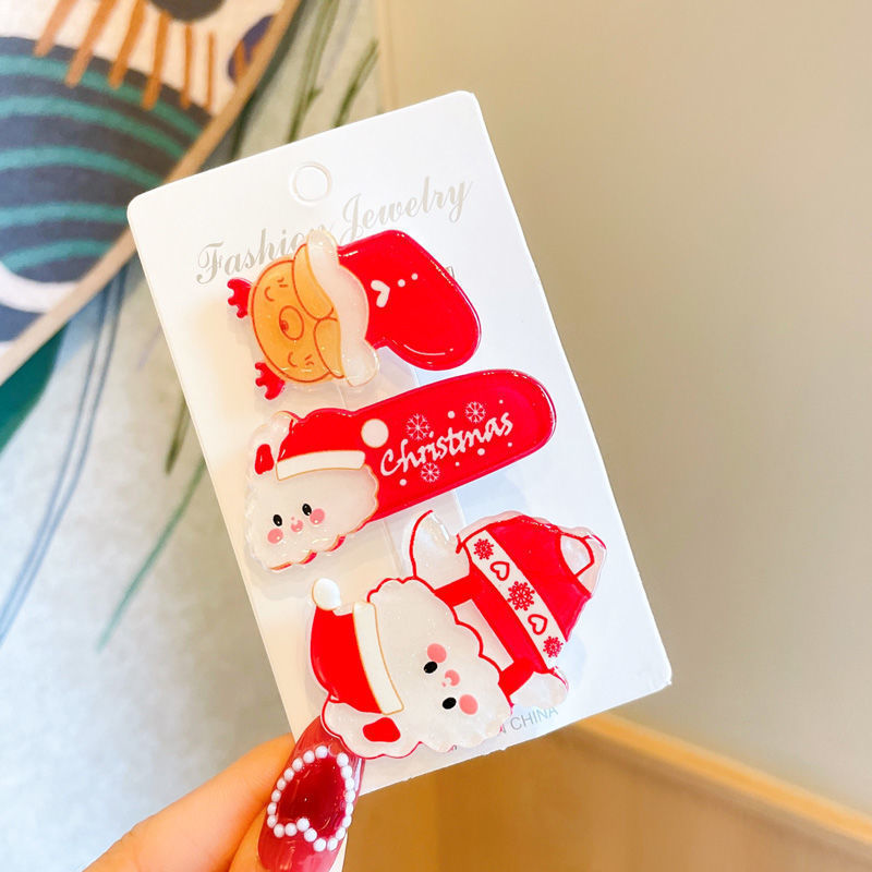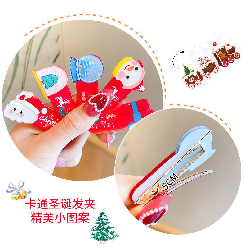 卡通圣诞儿童发夹可爱小女孩夹子红色侧边夹喜庆卡子女童节日发饰
