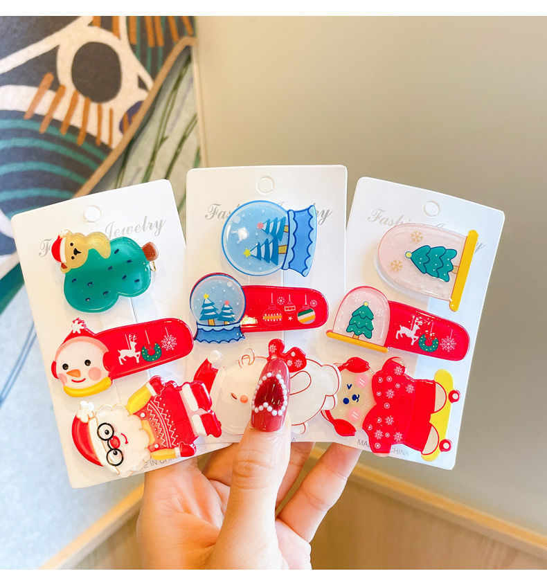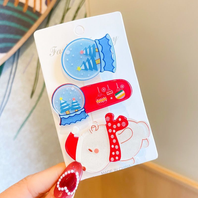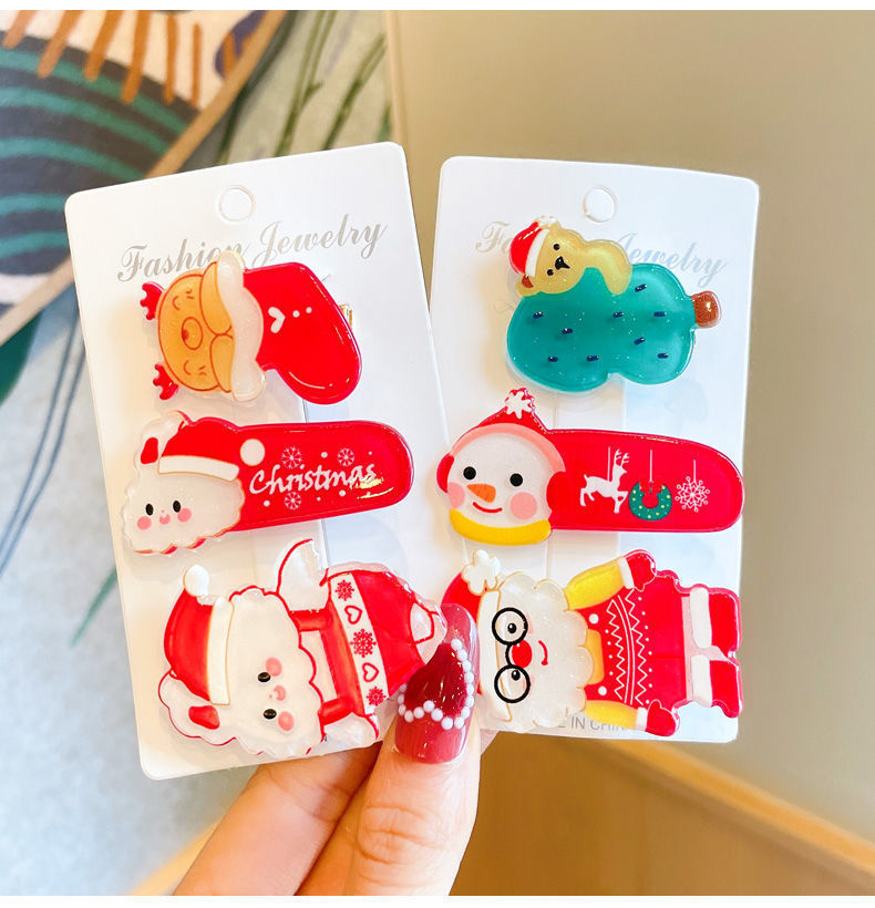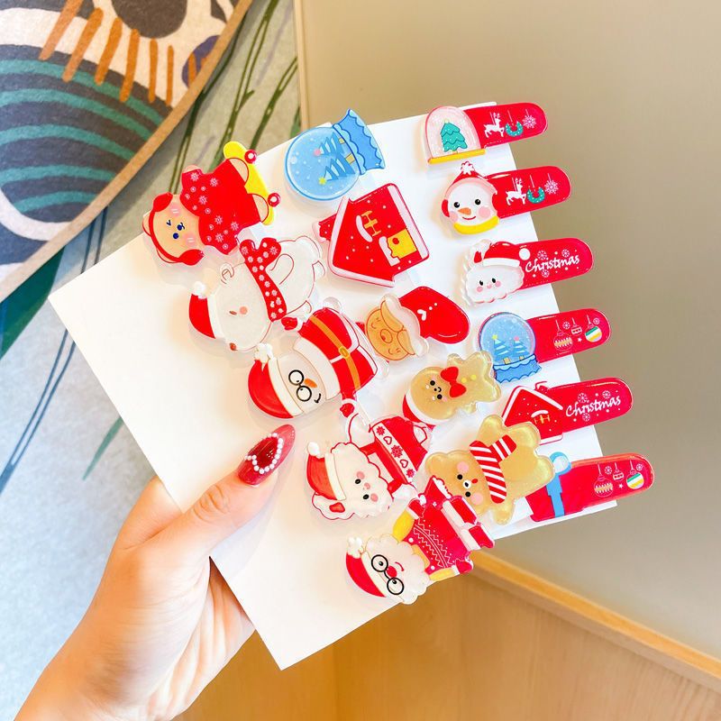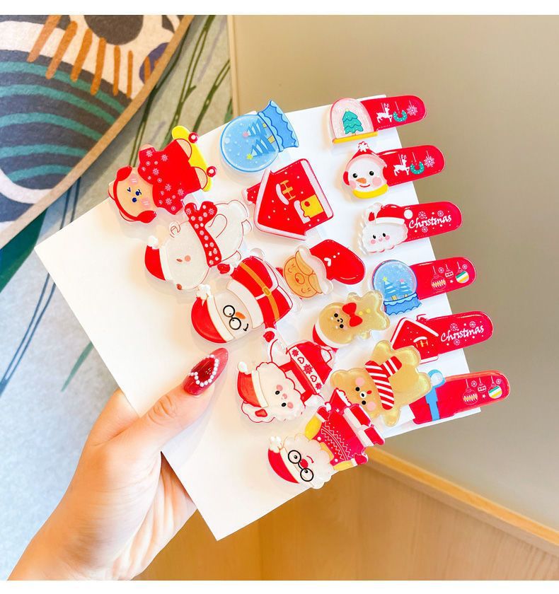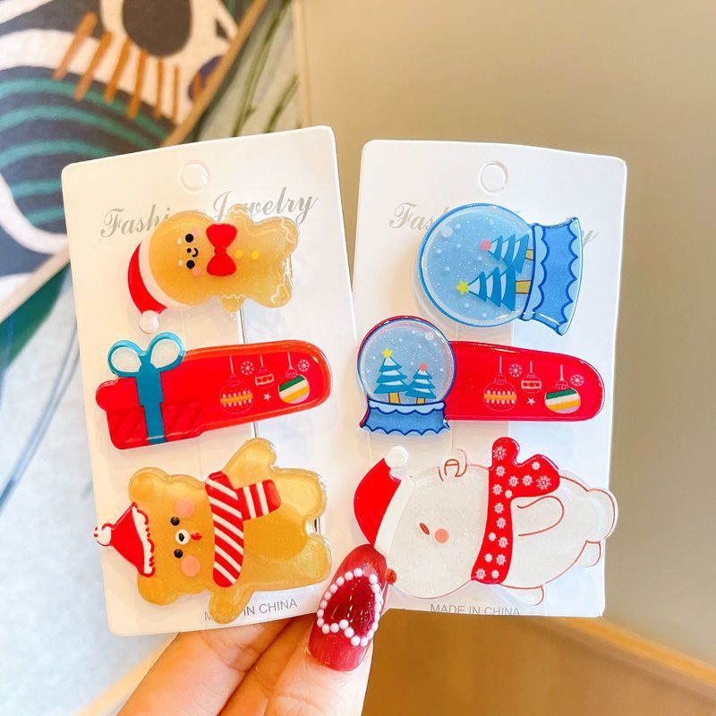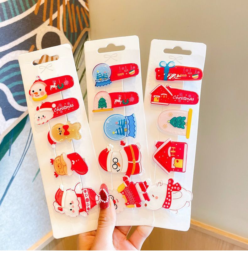 卡通圣诞儿童发夹可爱小女孩夹子红色侧边夹喜庆卡子女童节日发饰