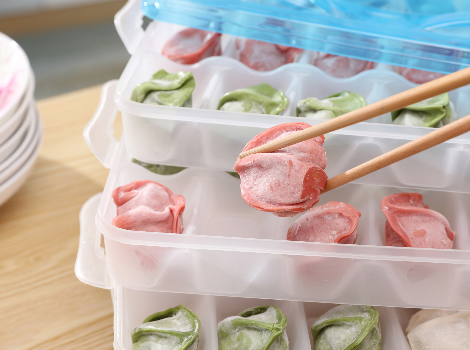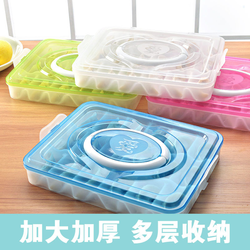 便携手提多层速冻饺子盒 长方形塑料速冻馄饨盒 分格速冻饺子盒