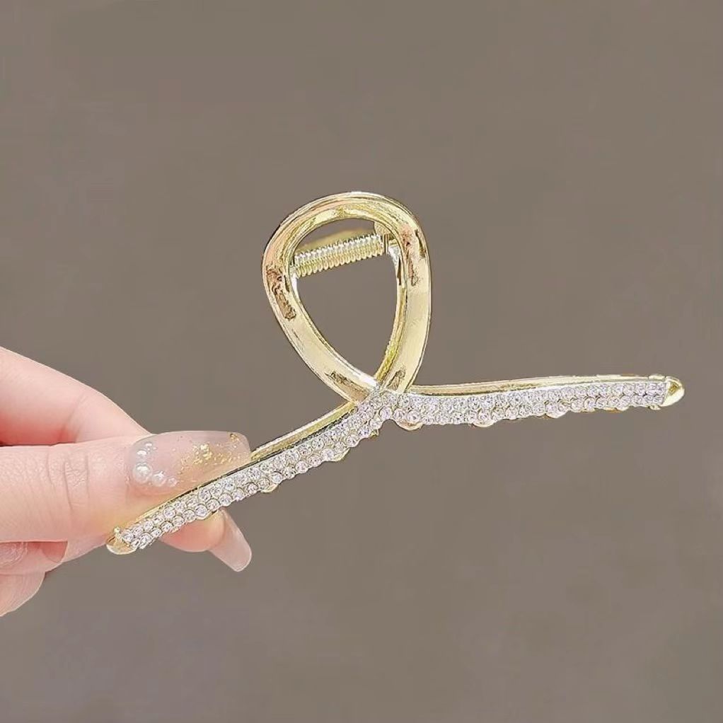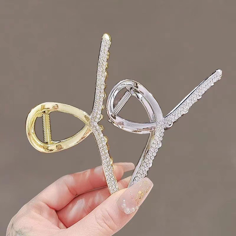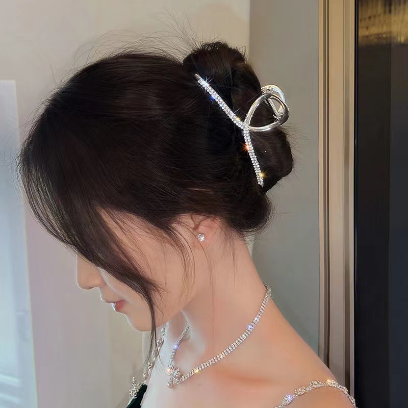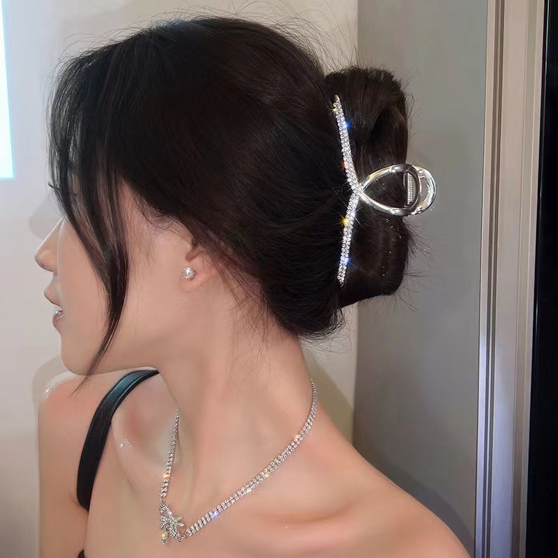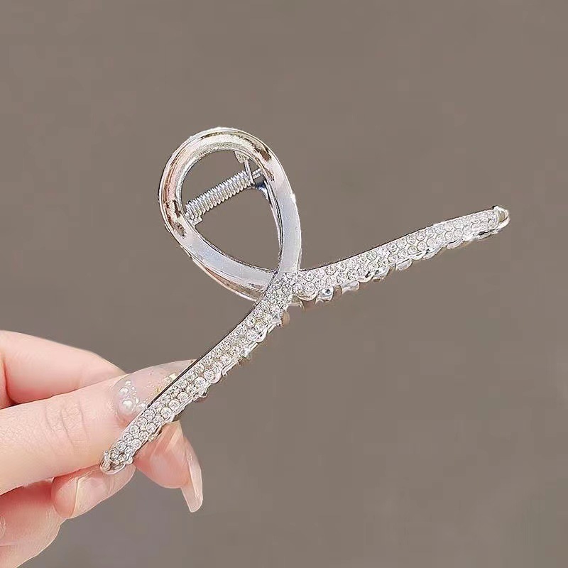 新款韩版气质简约交叉水钻抓夹女鲨鱼夹发饰