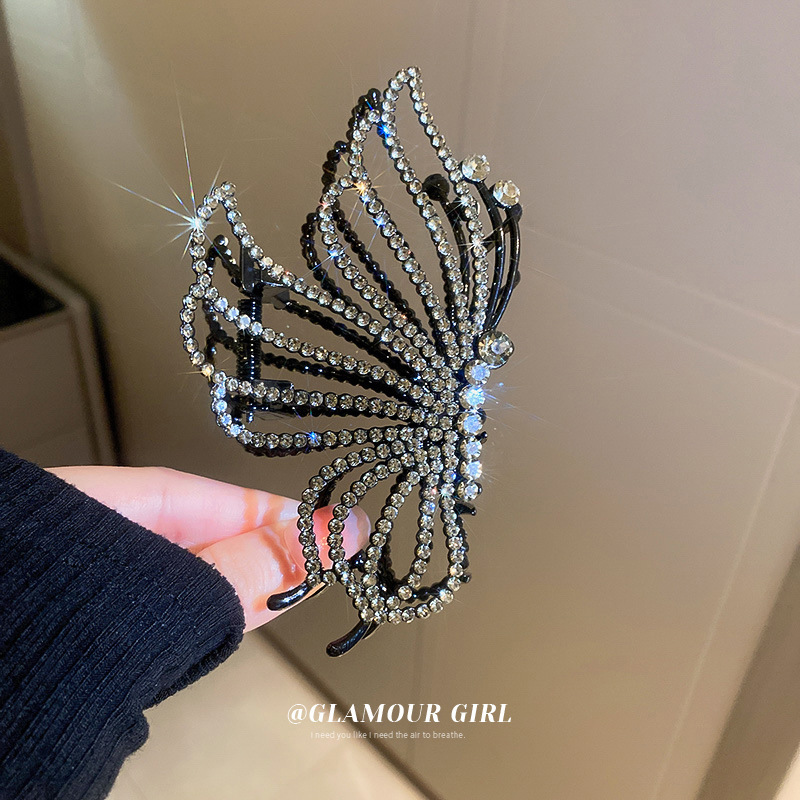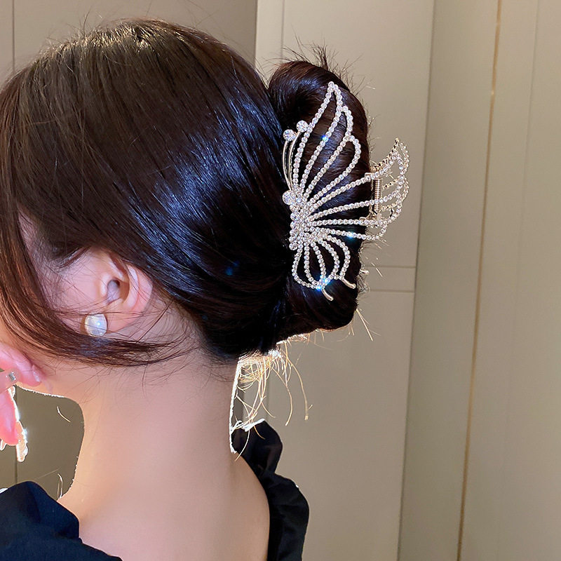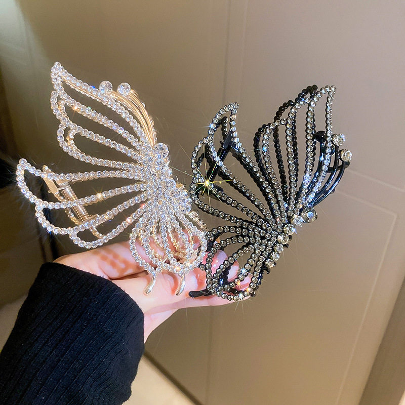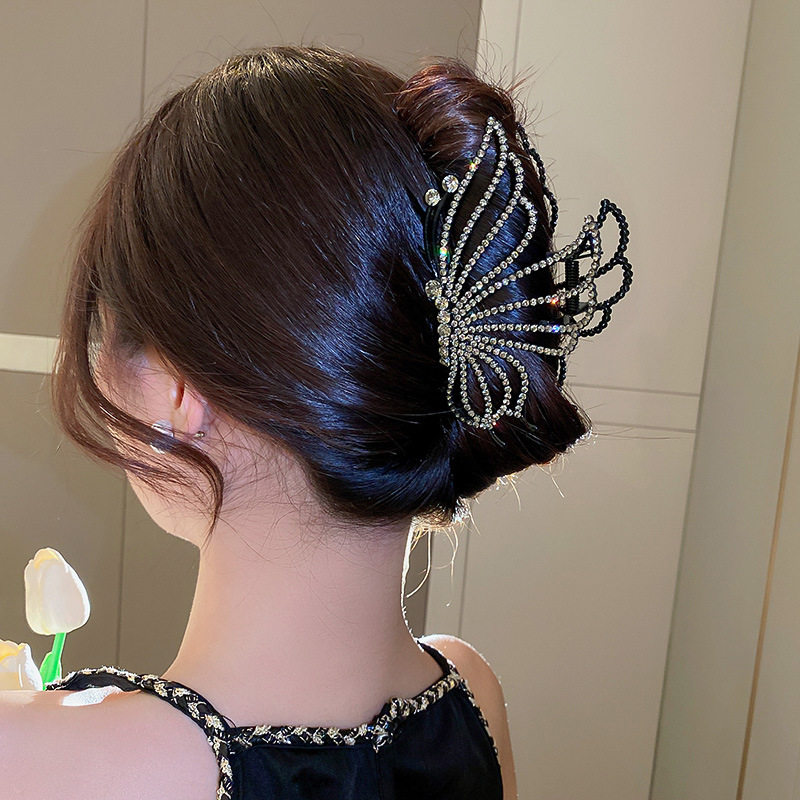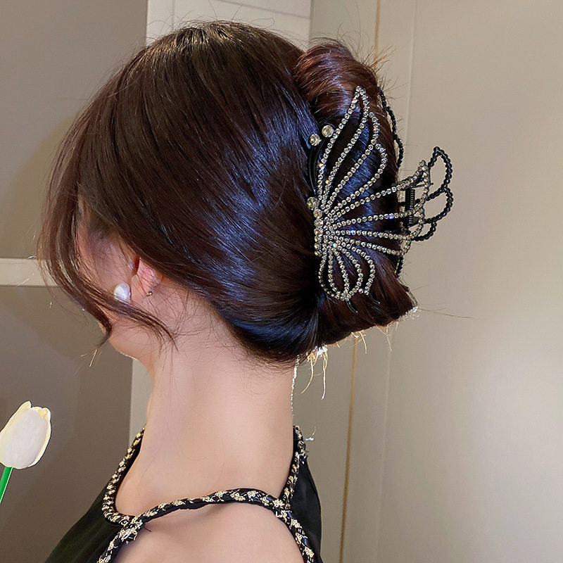 镶钻蝴蝶发夹时尚后发抓夹鲨鱼夹气质高级感发饰女