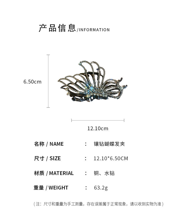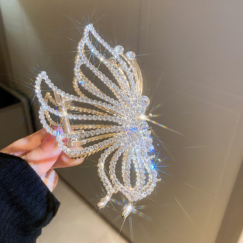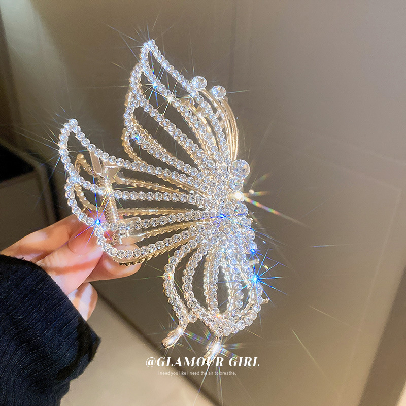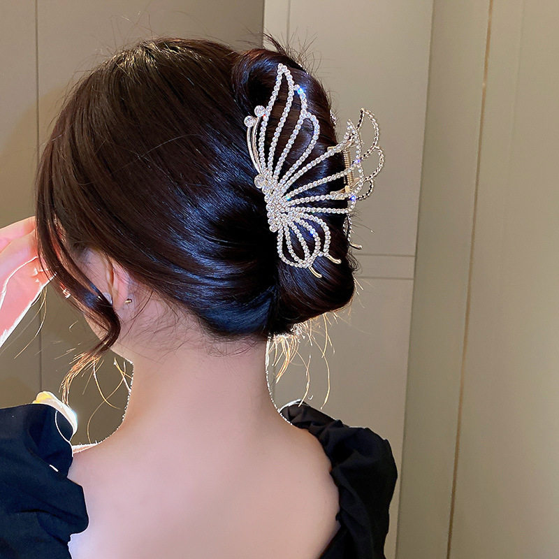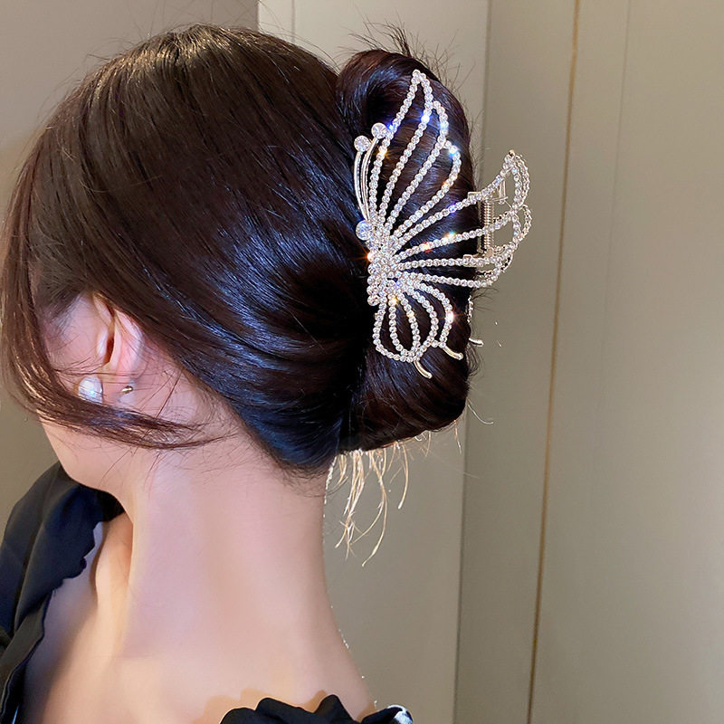 镶钻蝴蝶发夹时尚后发抓夹鲨鱼夹气质高级感发饰女