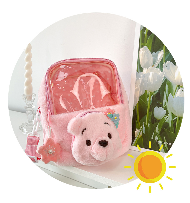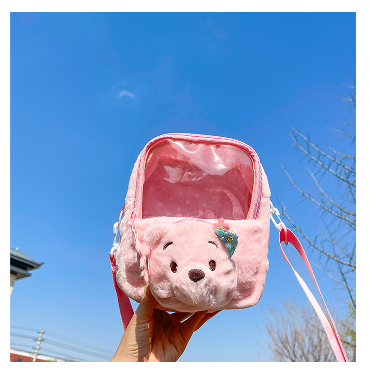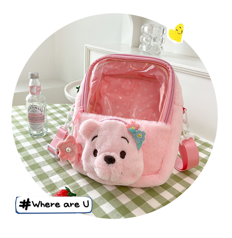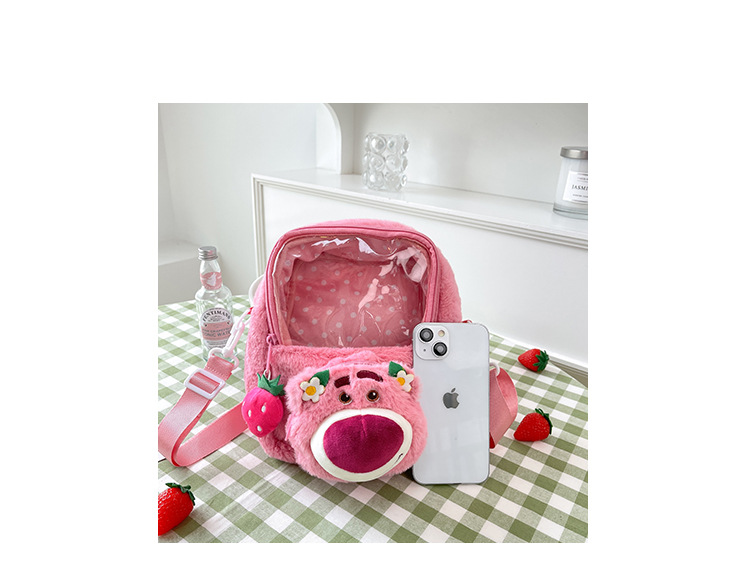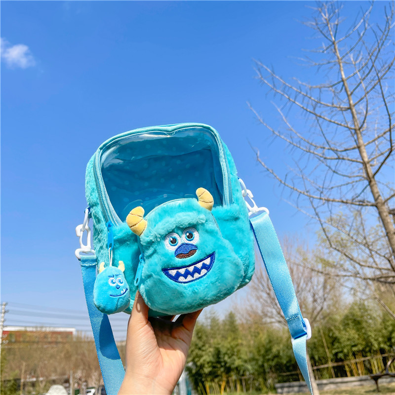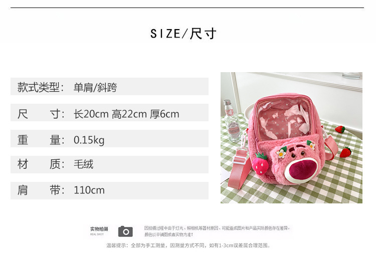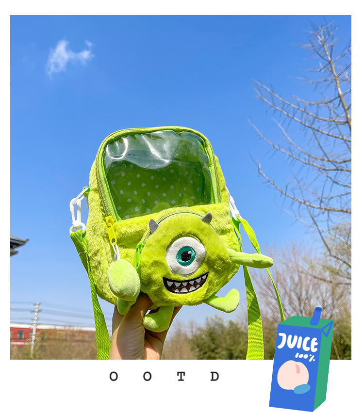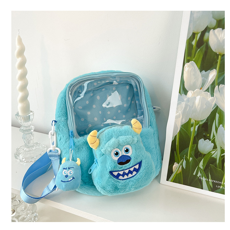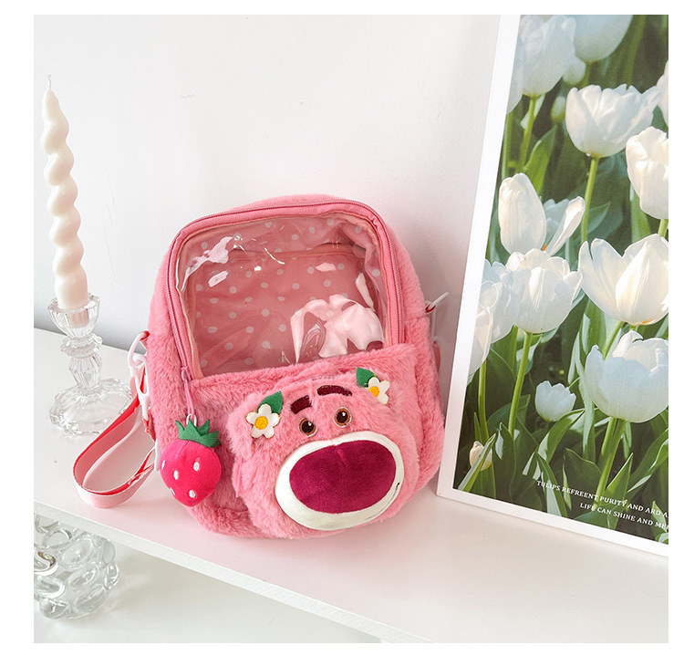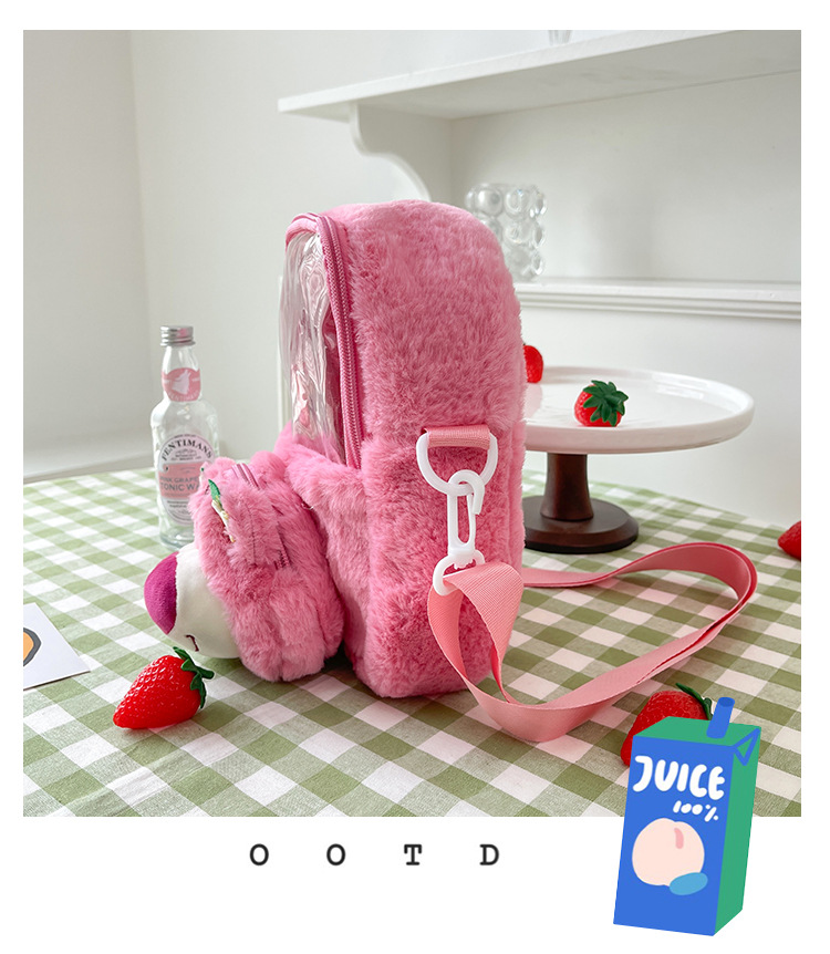 外贸草莓熊毛绒玩具批发卡通可爱透明斜挎包大眼怪苏利文晒娃痛包