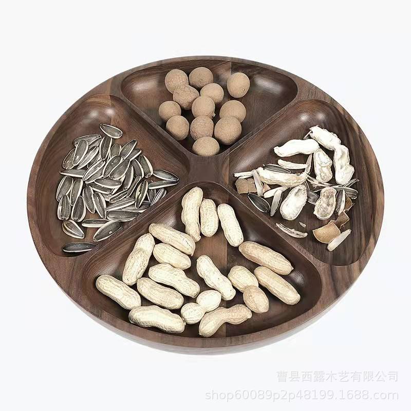 实木干果盘放干果点心客厅茶几圆形收纳盘创意圆形坚果零食盘