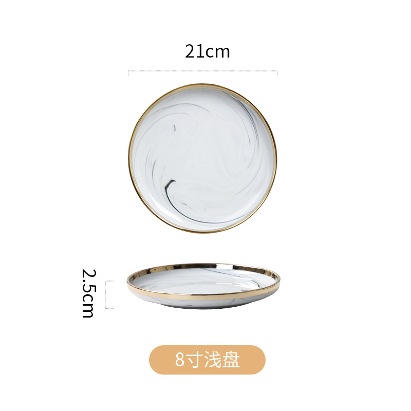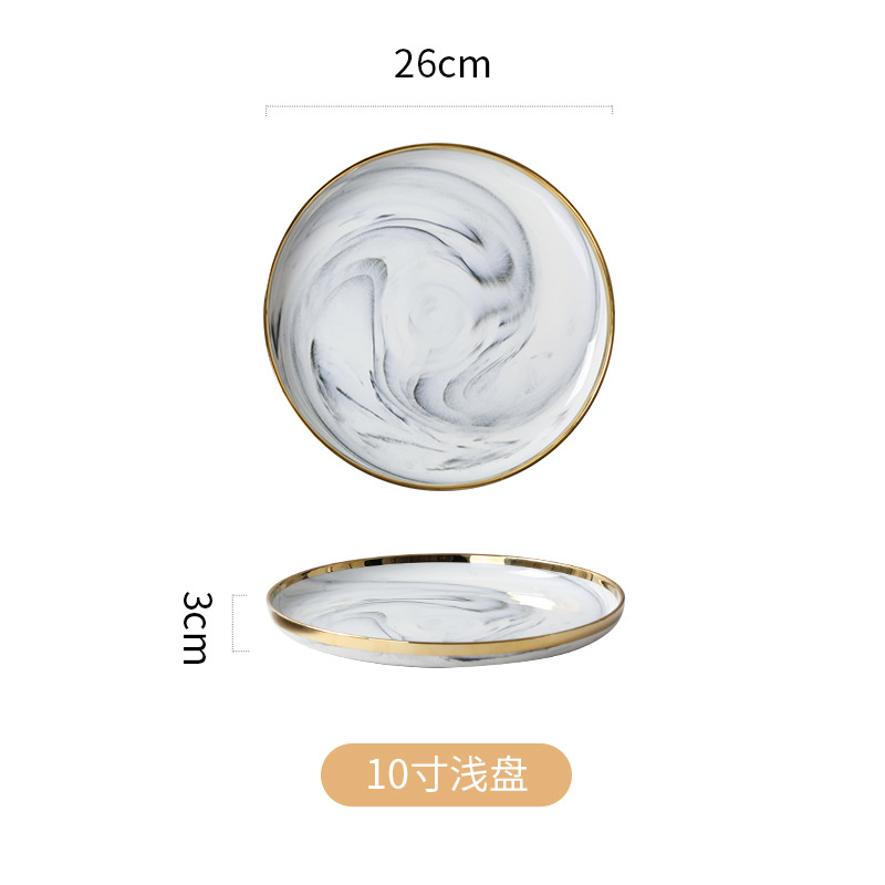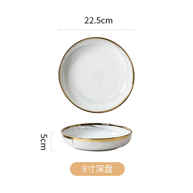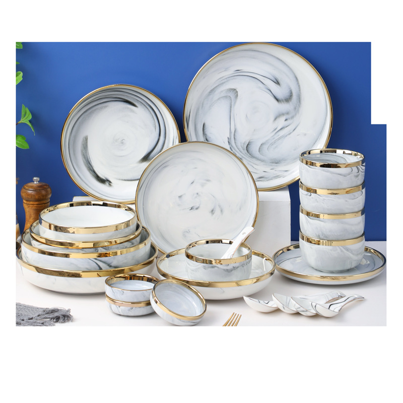 餐具陶瓷碗筷套装大理石纹灰色碟子餐盘陶瓷碗盘子金边陶瓷餐具