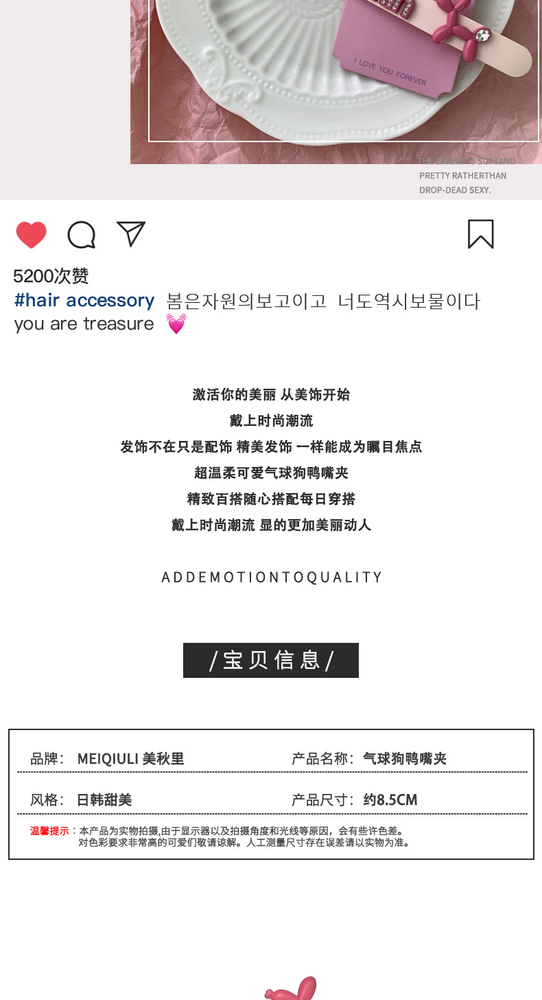 韩国粉色系气球狗字母鸭嘴夹发夹 甜美可爱小发卡少女刘海夹边夹