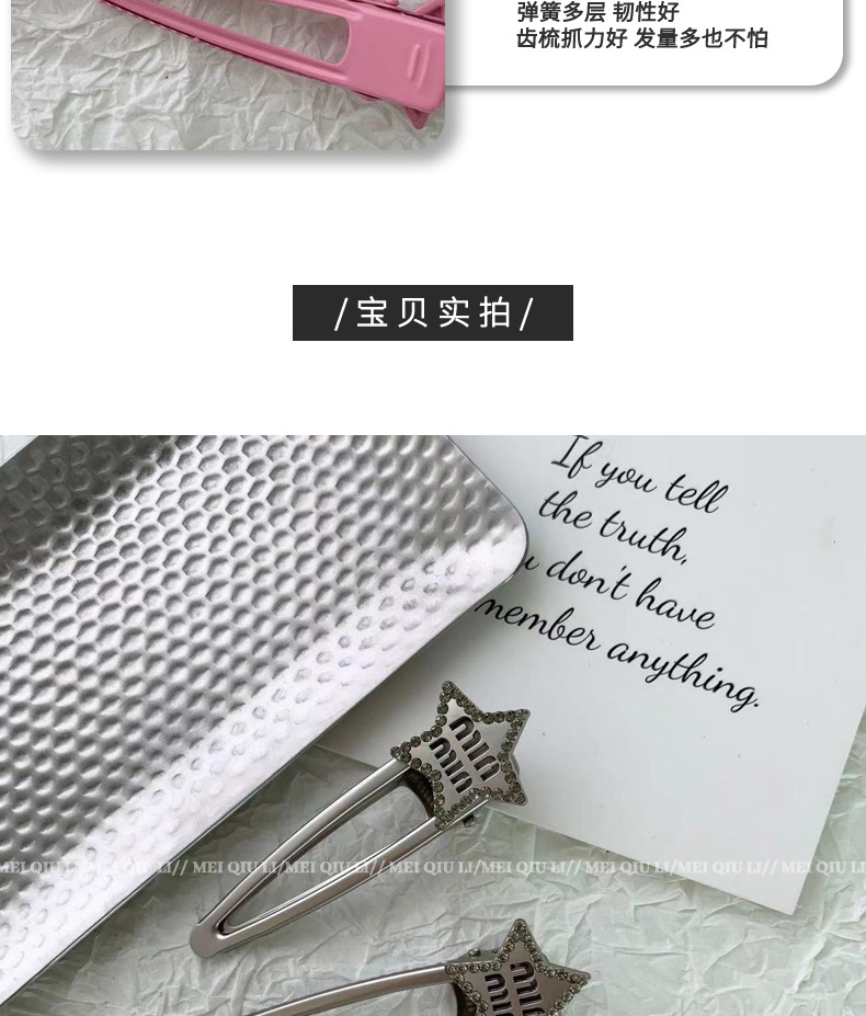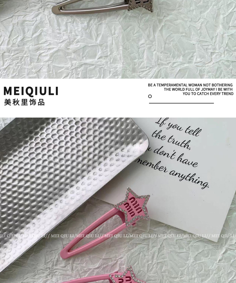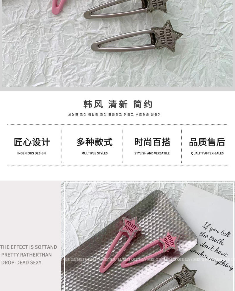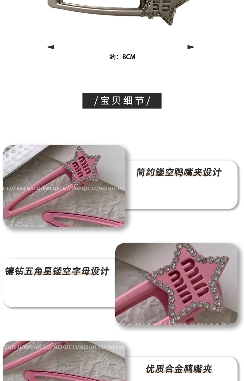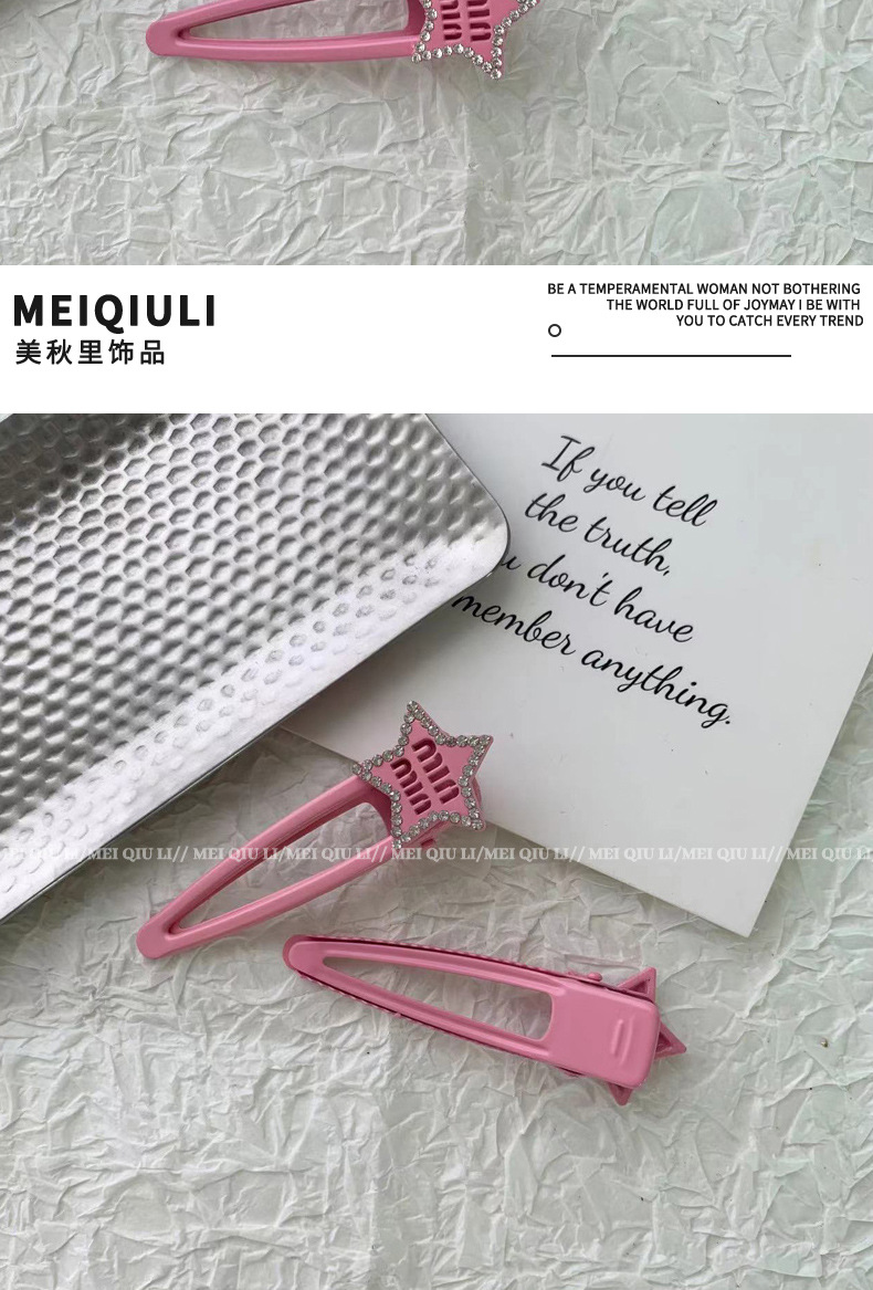 韩国新款高级粉色五角星鸭嘴夹发夹 甜酷辣妹闪钻字母侧边夹发饰