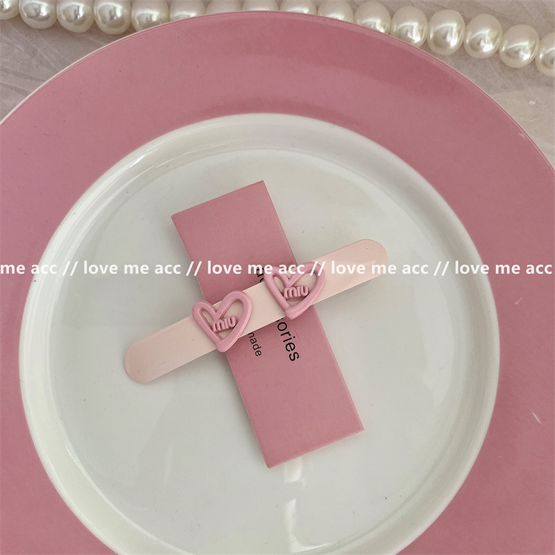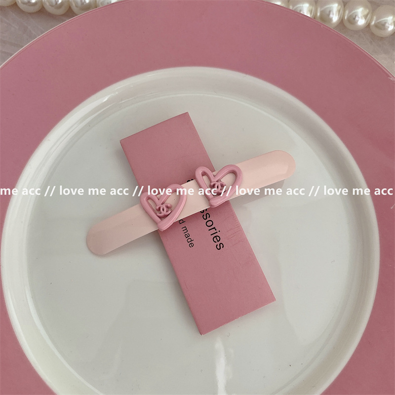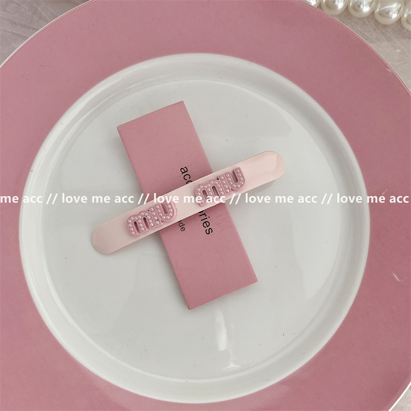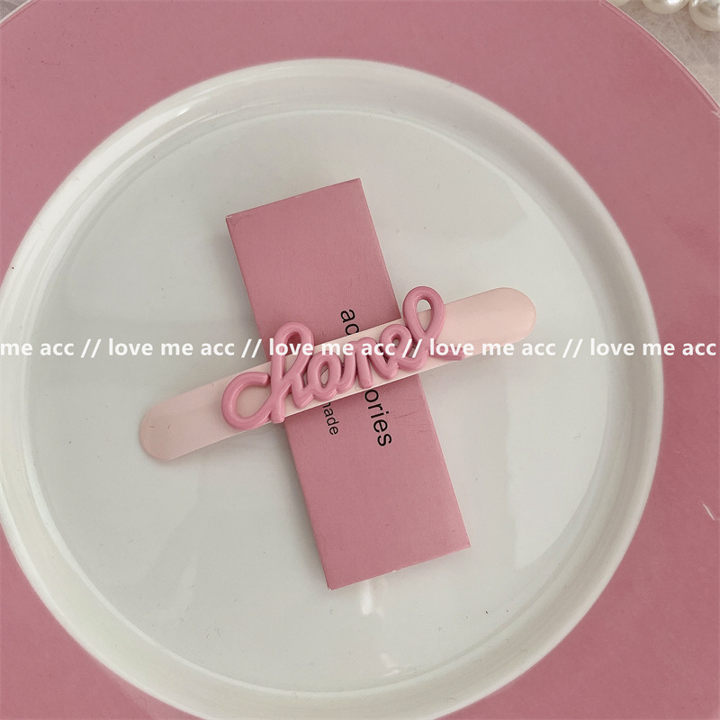 小红书爆款粉色系列~质感气质字母弧形简约粉色发夹鸭嘴夹刘海夹