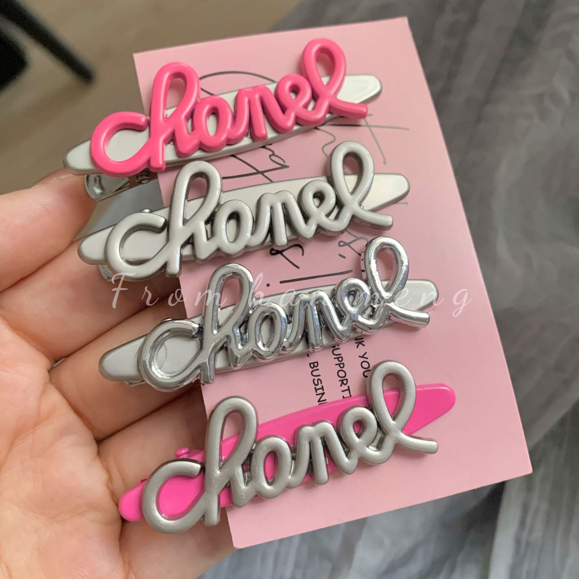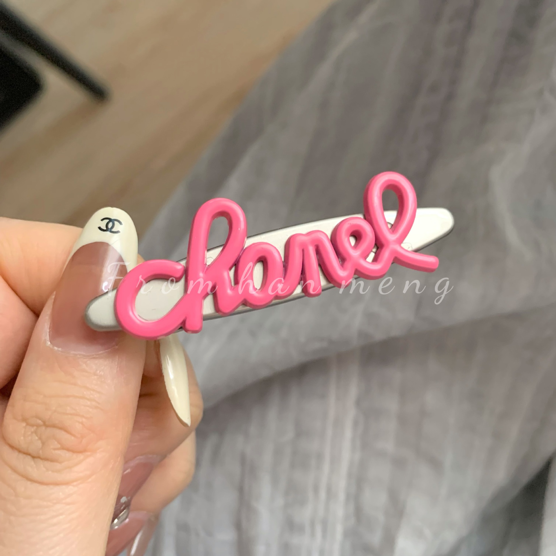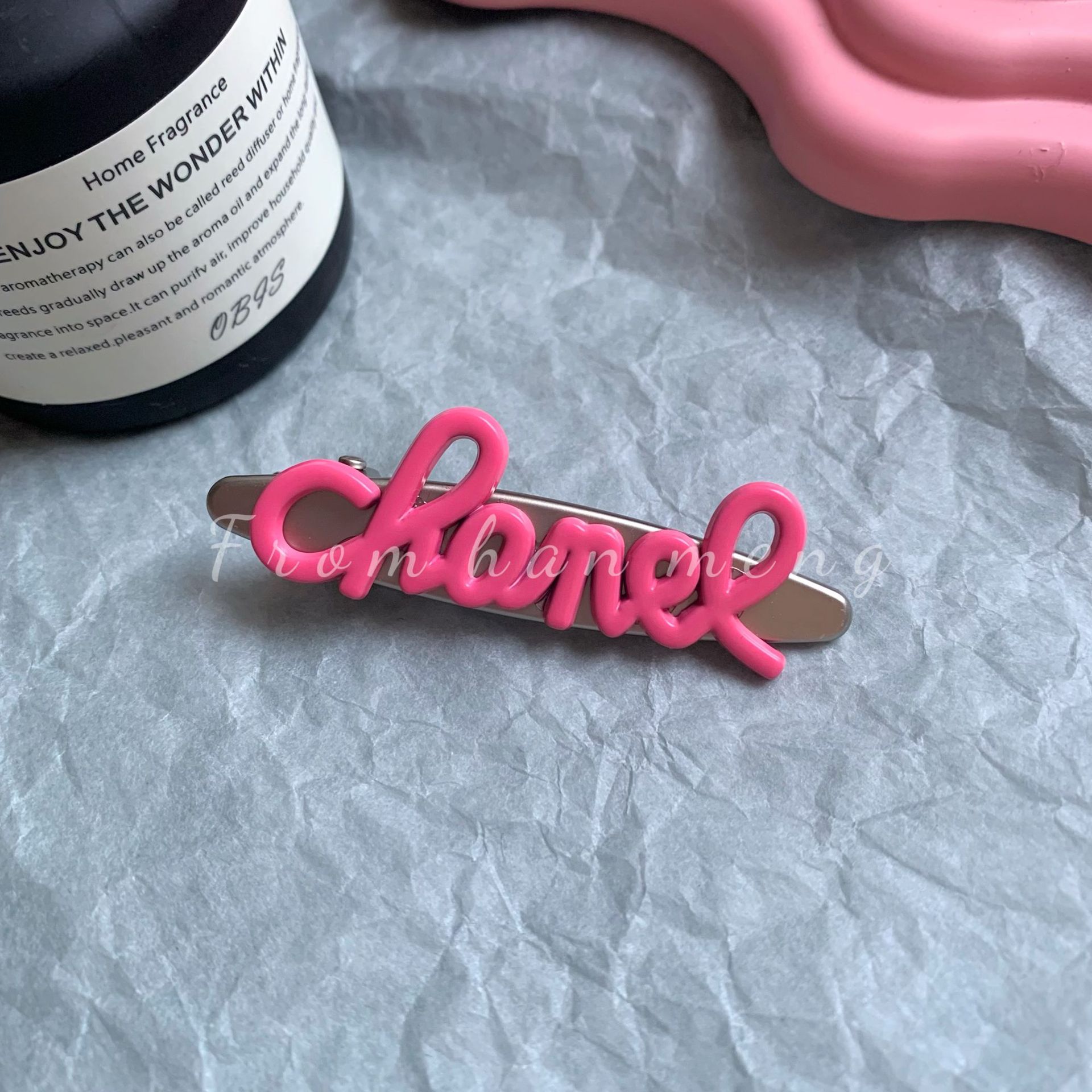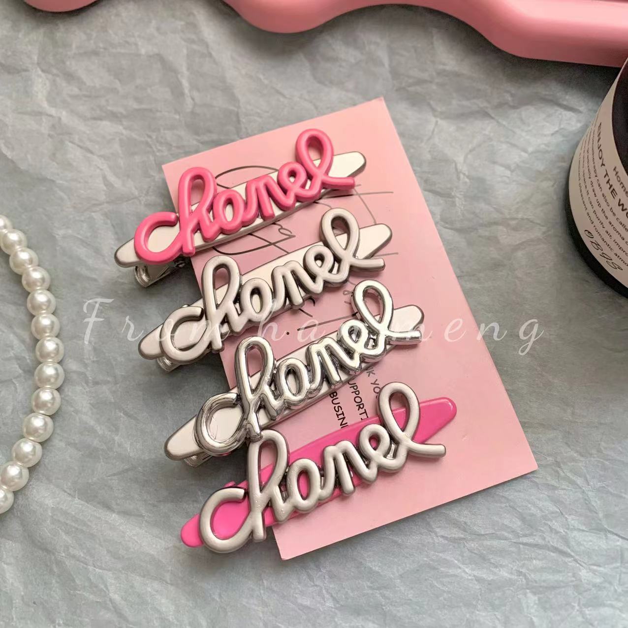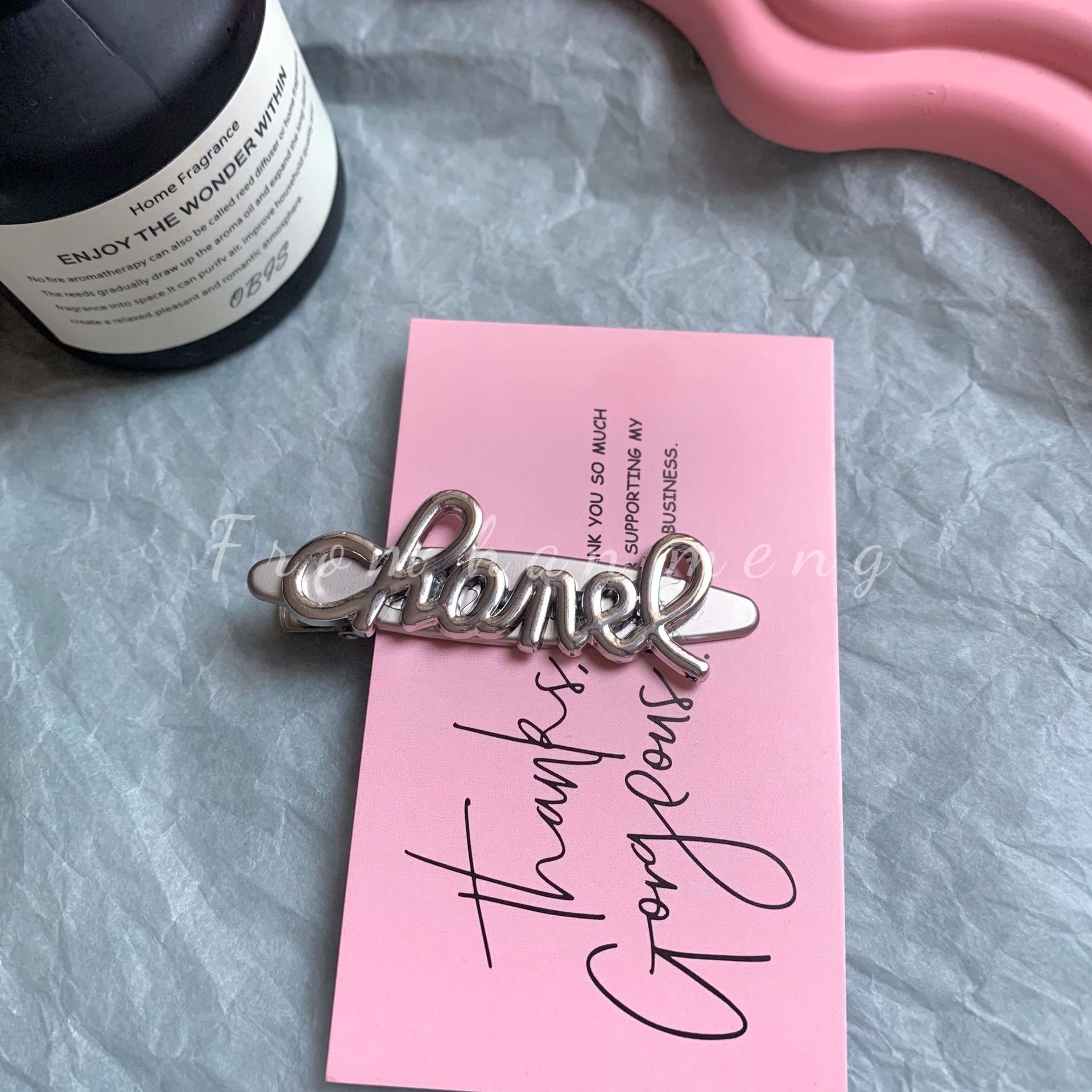 高级感字母发夹甜美少女小红书合金粉色小香风发饰鸭嘴夹刘海夹