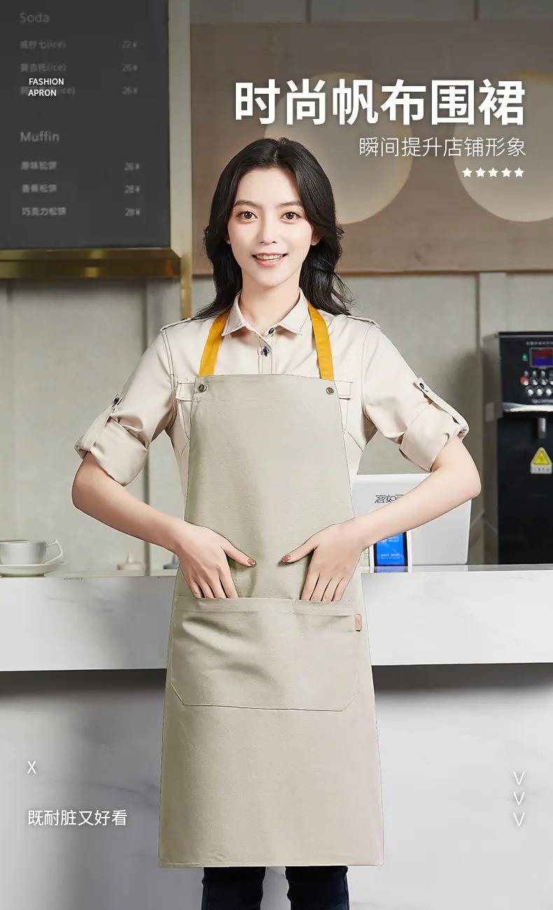 好丽家围裙定制厨房家用火锅店餐厅纯色防水防油帆布围裙印字logo