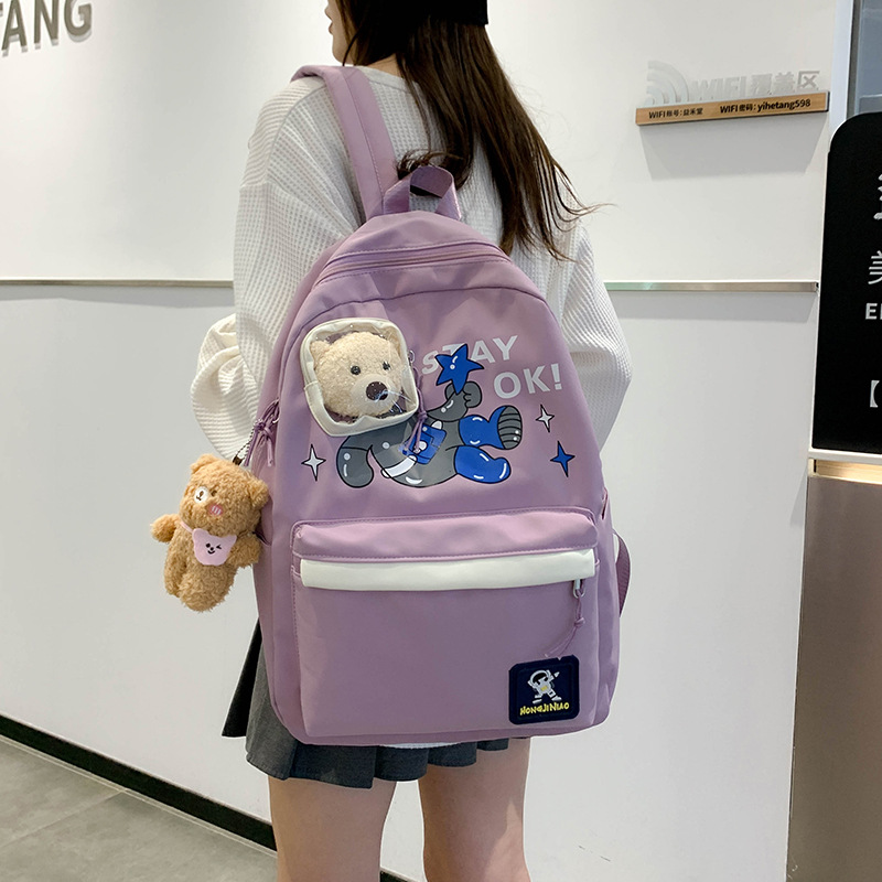 简约书包女 ins高中学生双肩包少女校园风休闲背包