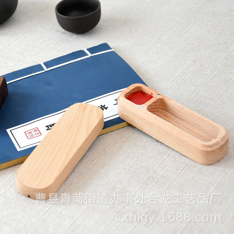 批发印章印盒锦盒木质书法礼品盒方便携带印泥磁铁收纳盒