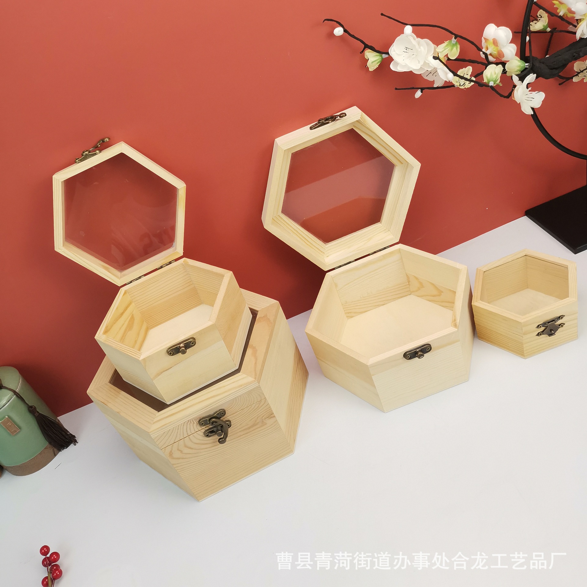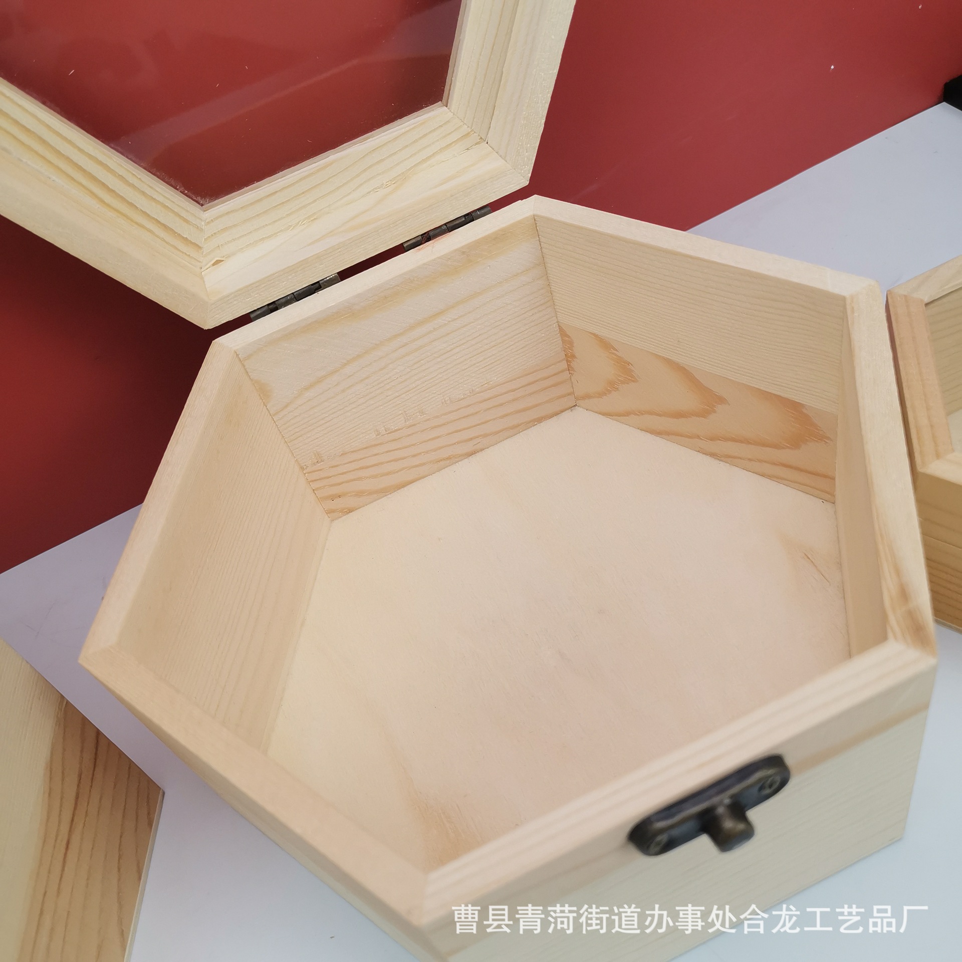 批发供应木盒 透明玻璃盖盒礼品盒六角形盒首饰盒礼盒规格可定 制