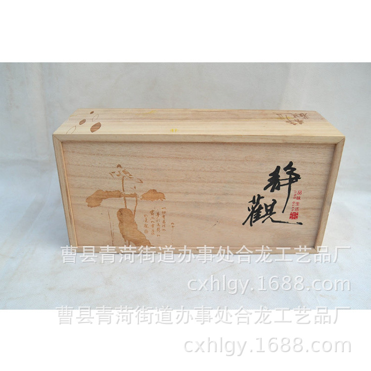创意抽拉式茶壶包装盒 桐木长方形原色包装木盒 木礼品盒