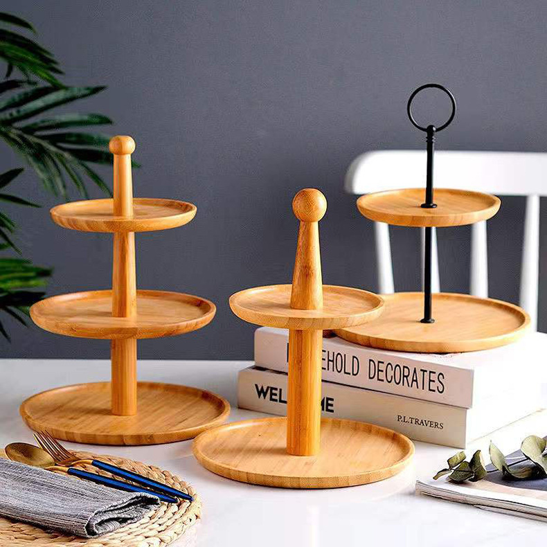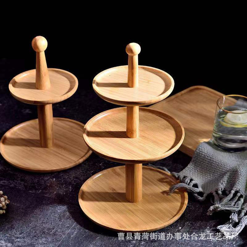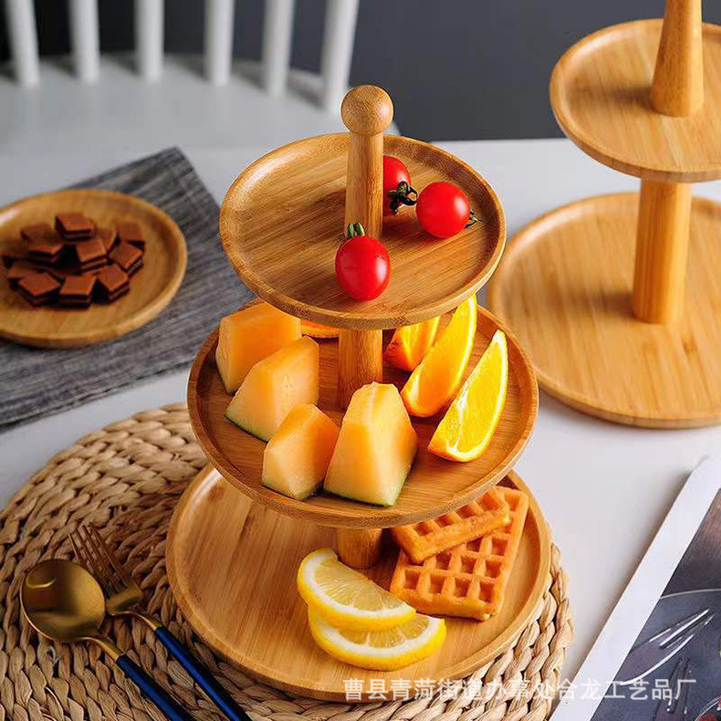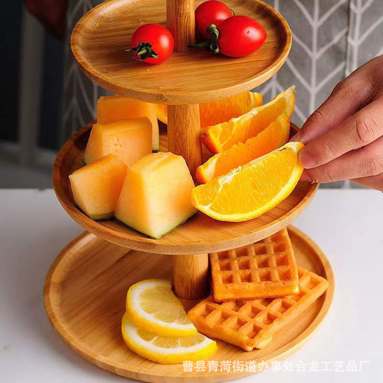 竹木水果盘三层水果盘蛋糕架甜品台家用客厅下午茶糖果点心托盘