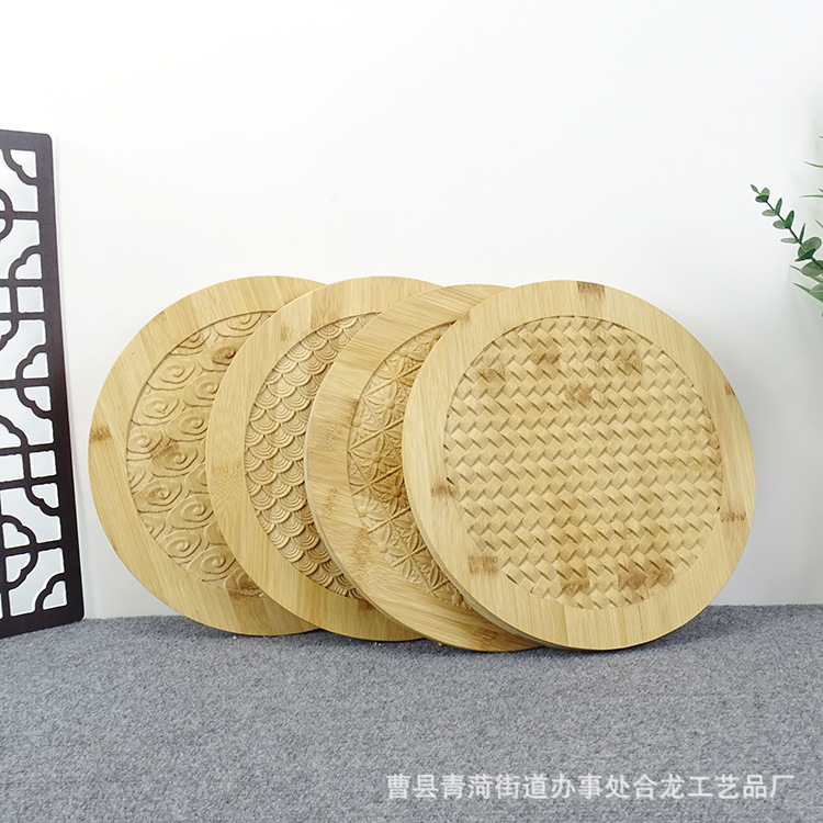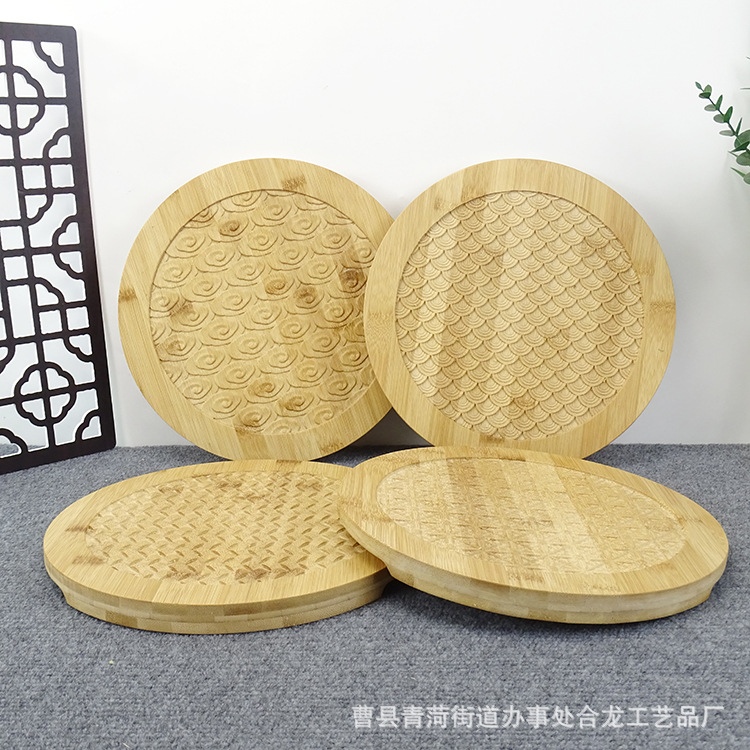 竹木托盘浮雕圆形茶盘祥云浮雕竹木茶盘下午茶家具茶托盘可定 制