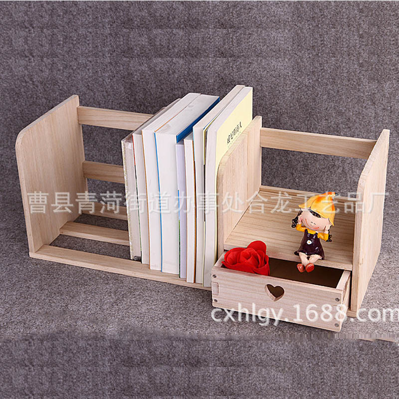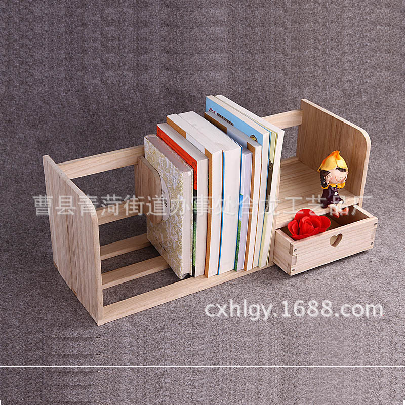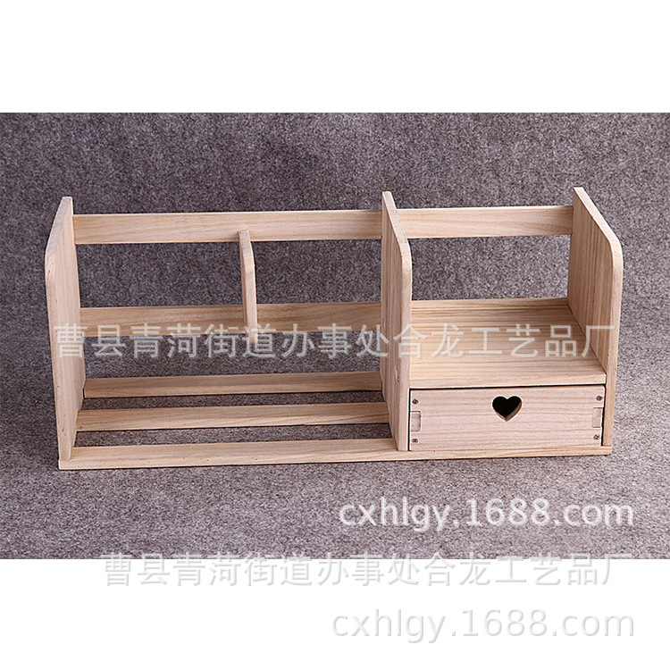 桐木原色学生书柜书架木 单层抽屉书架木桌上