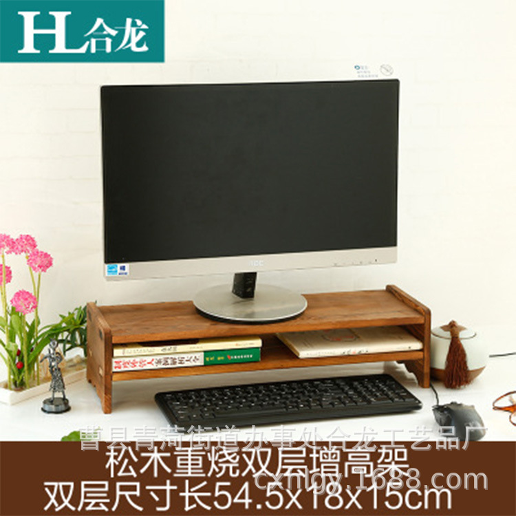 显示器垫高架 木质电脑收纳支架 单双层电脑支架 电脑显示器支架