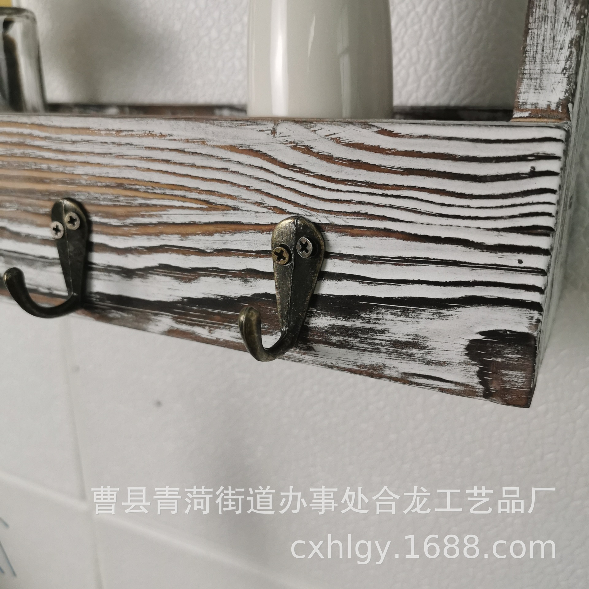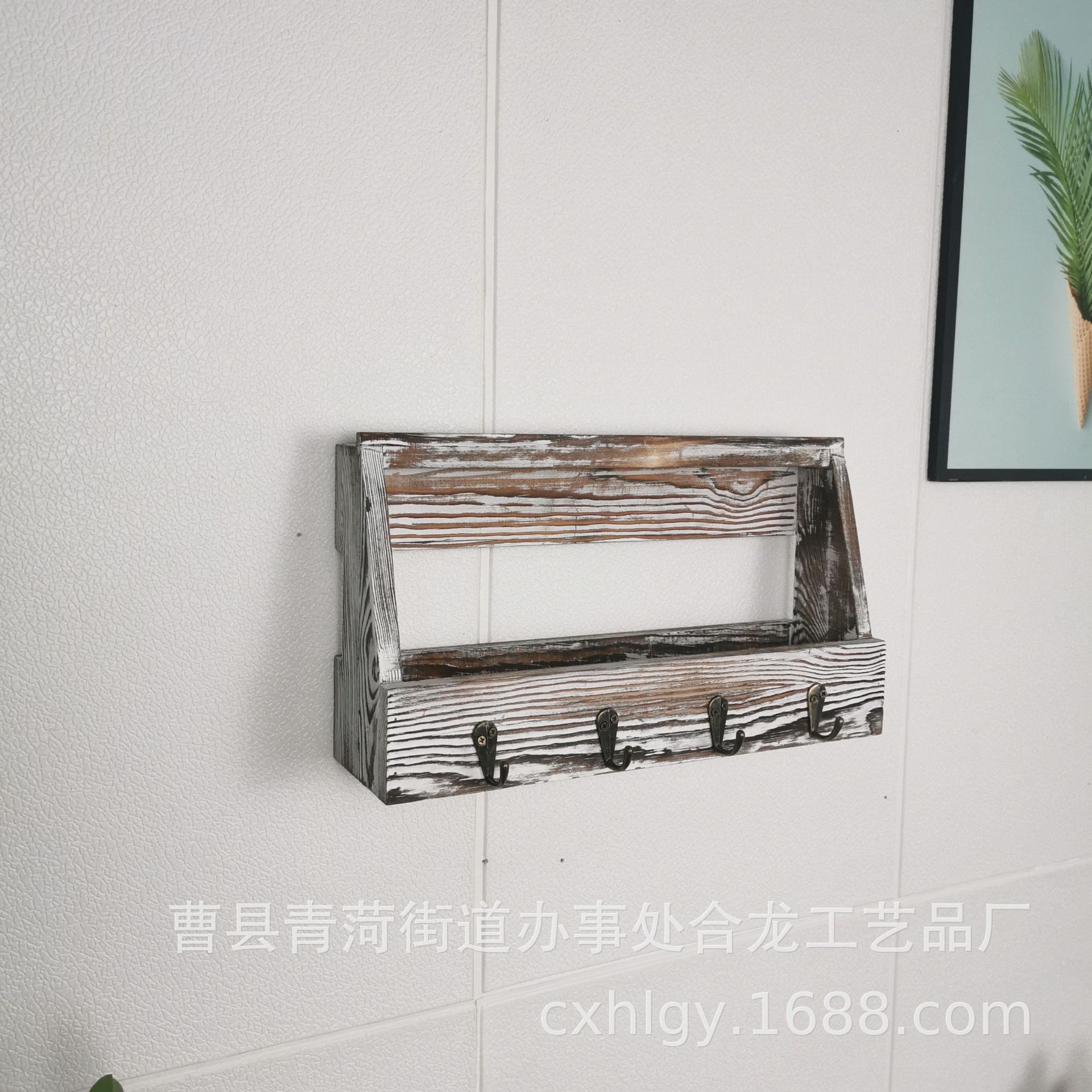 厂家批发免钉钥匙收纳挂架家用门口免打孔挂钩木质置物架