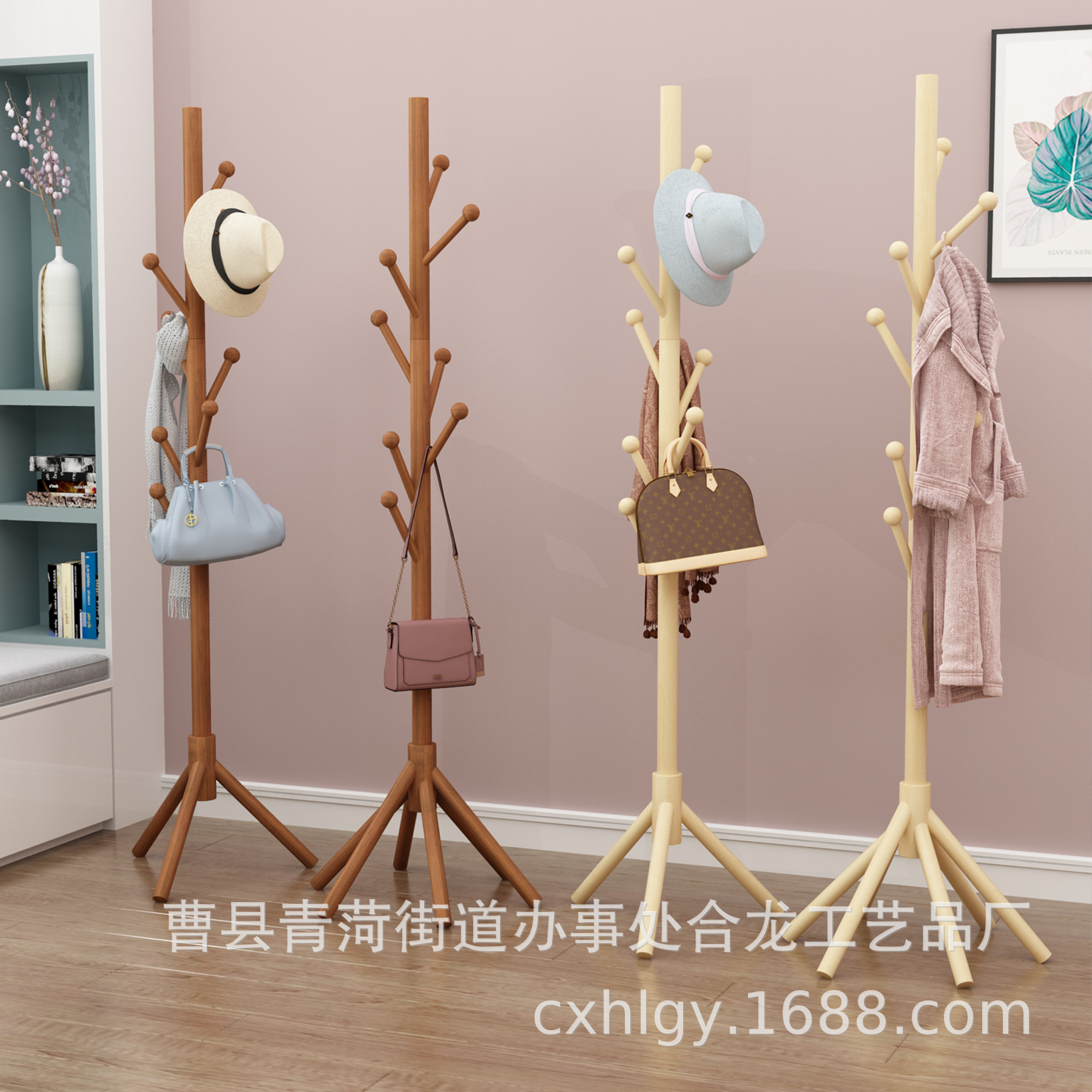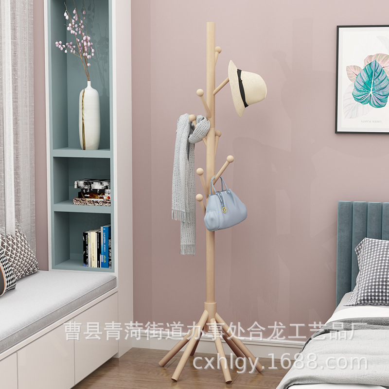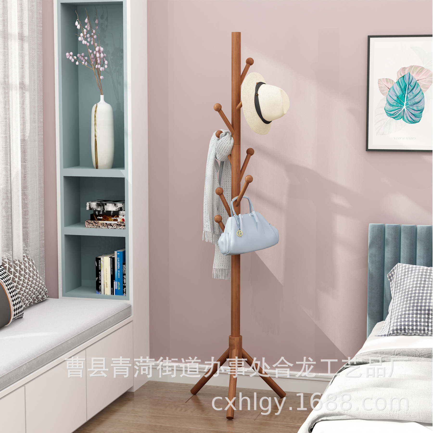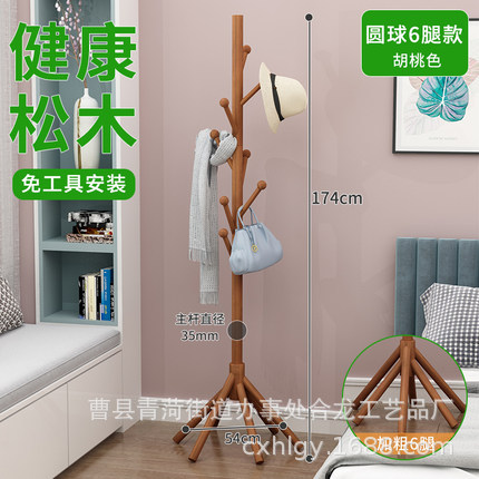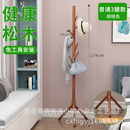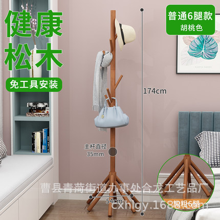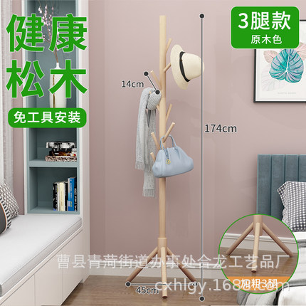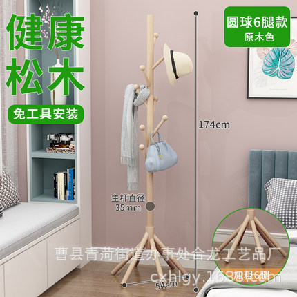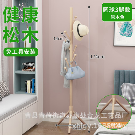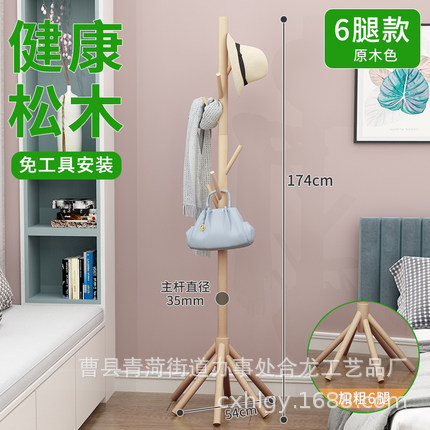 松木衣架落地卧室衣帽架挂包架简易家用客厅单杆立式收纳挂衣架