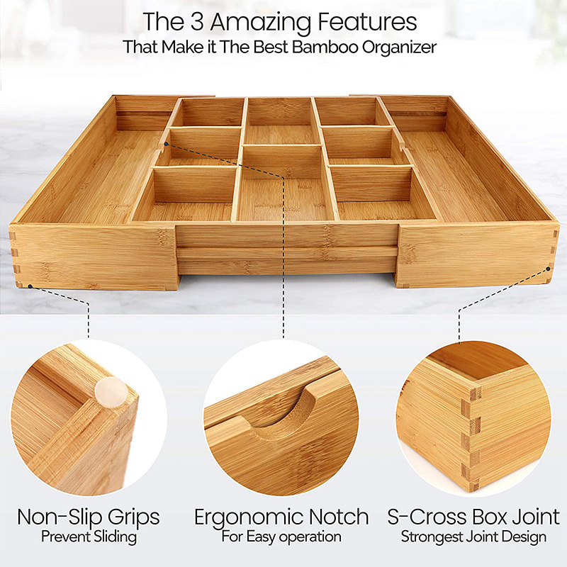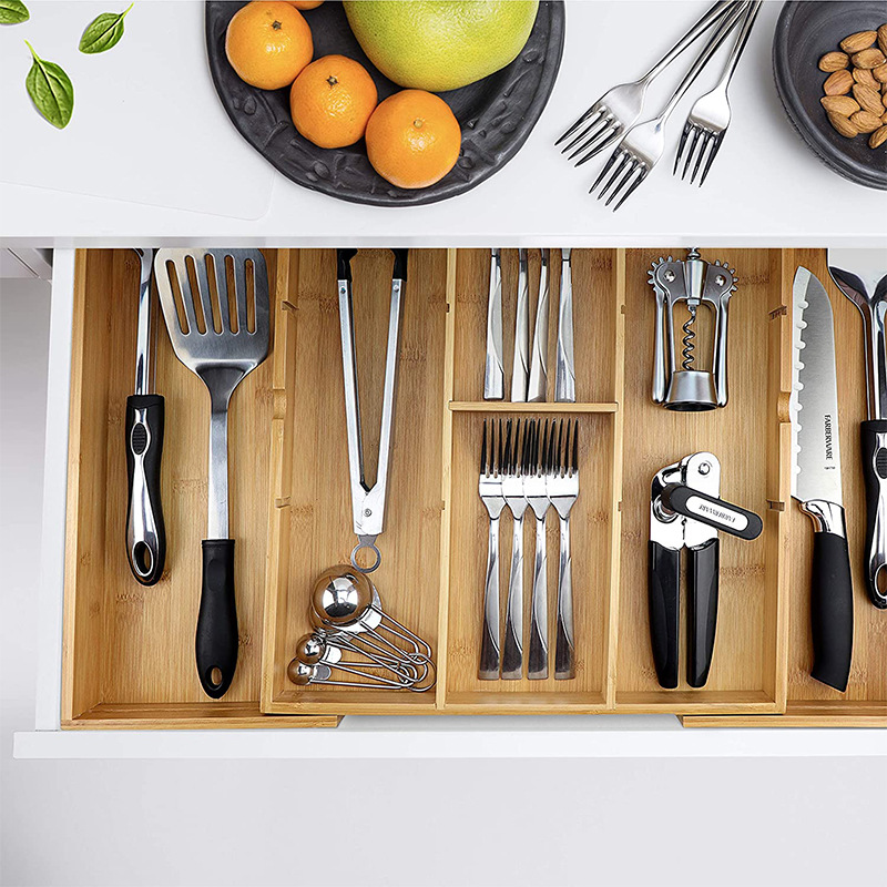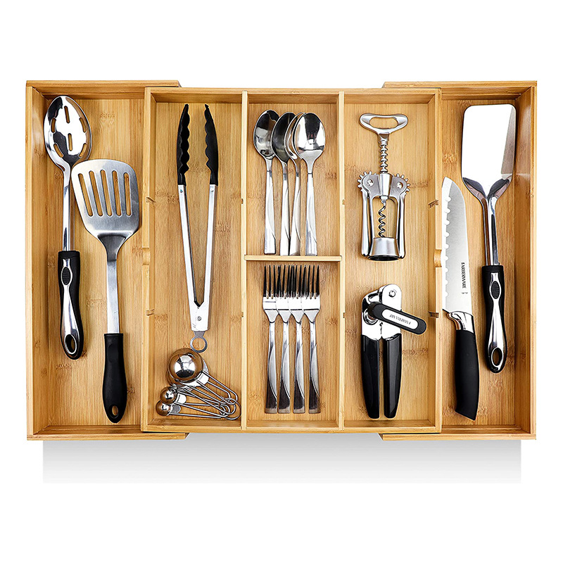 可伸缩刀具盒竹制可调分格式西餐用具餐具托盘家用厨房用品收纳盒