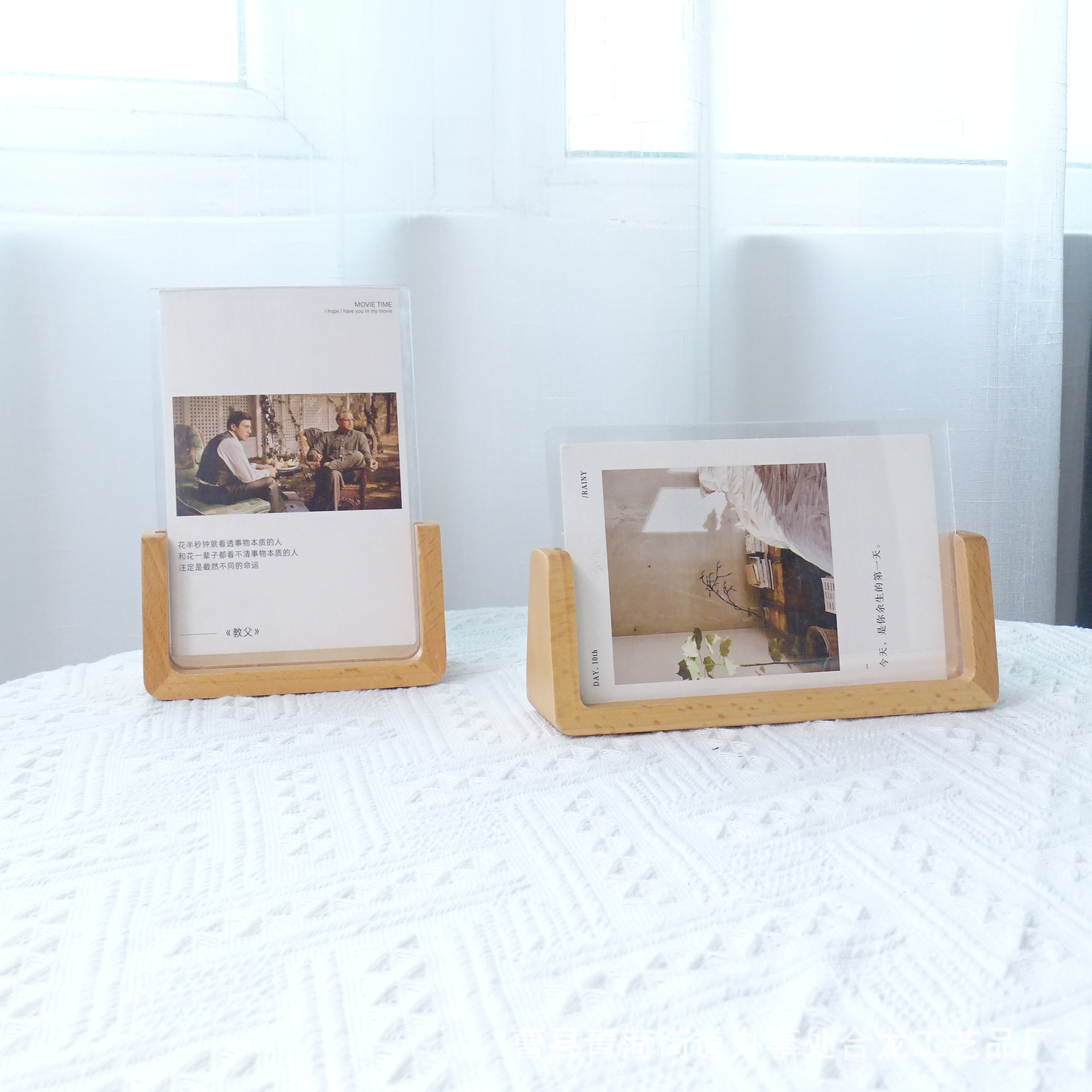 U型相框榉木黑胡桃木相框原木色实木便签卡片底座 家用台历底座摆