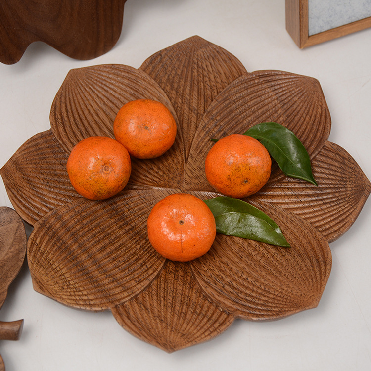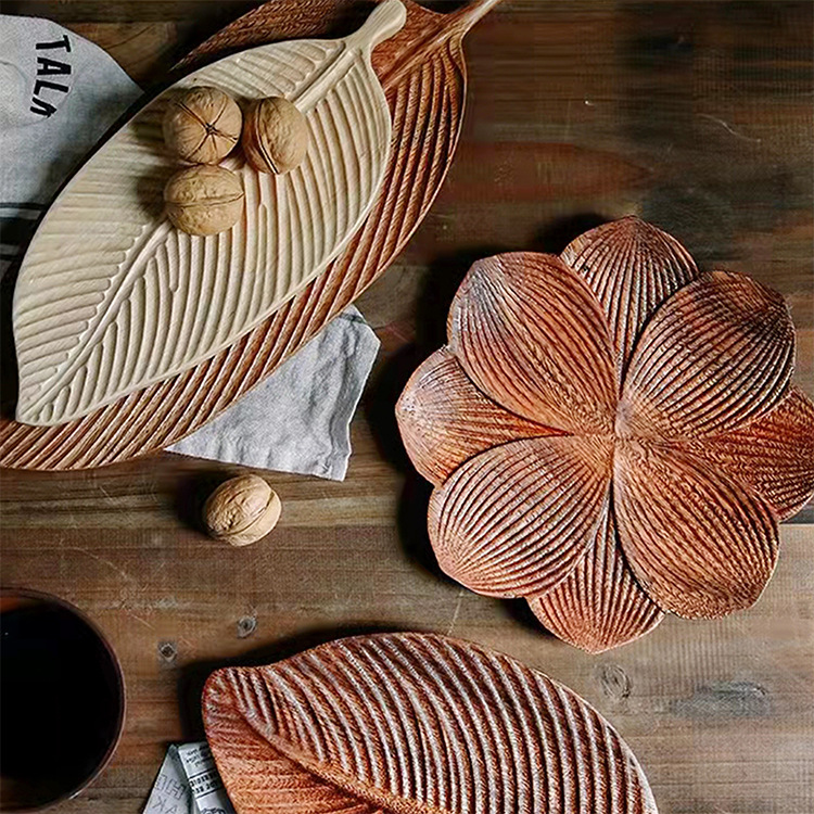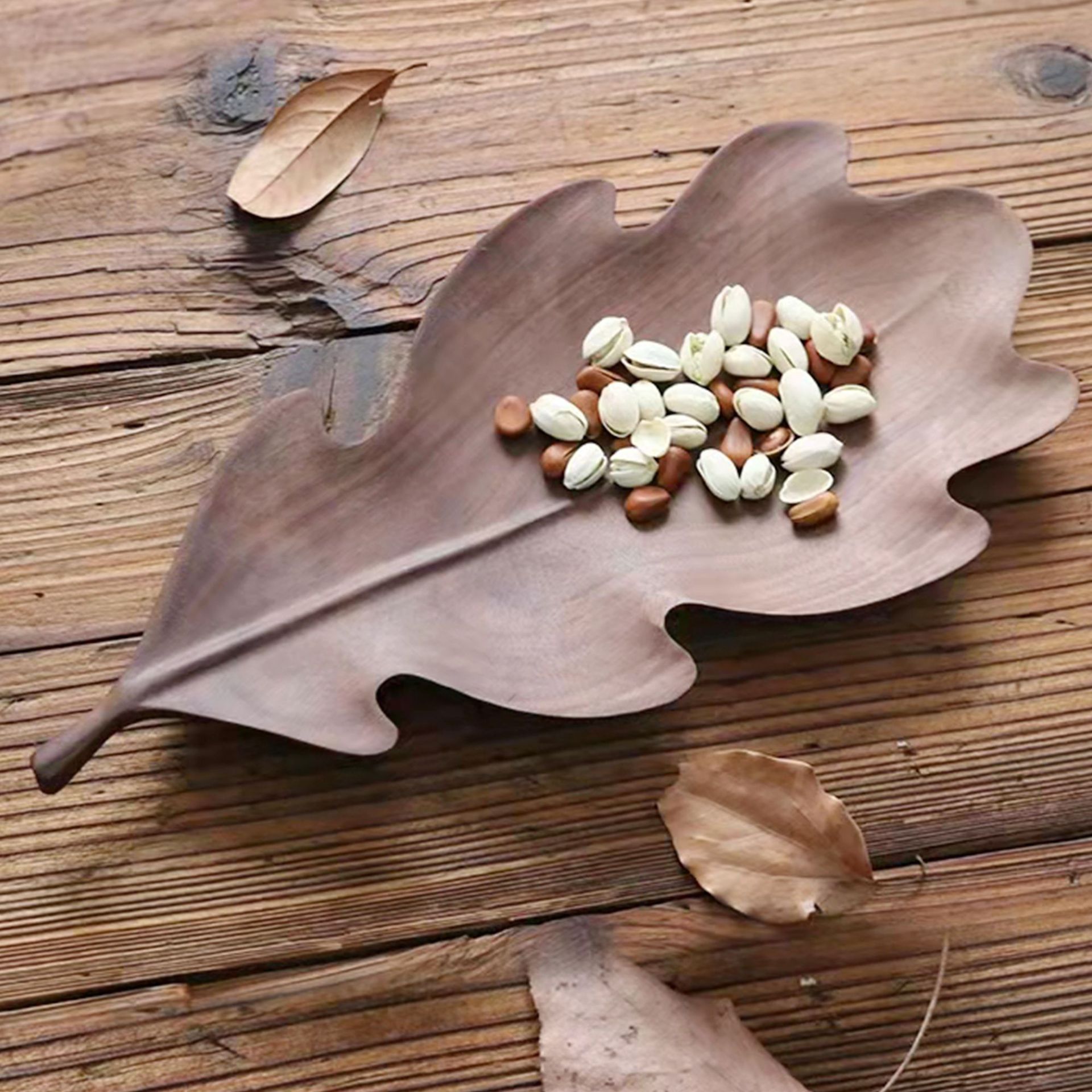 黑胡桃木茶盘树叶盘家用零食盘果盘创意日式木质托盘茶盘可定 制