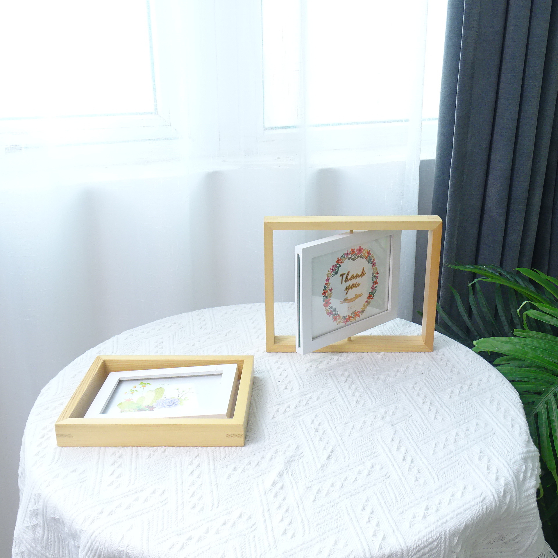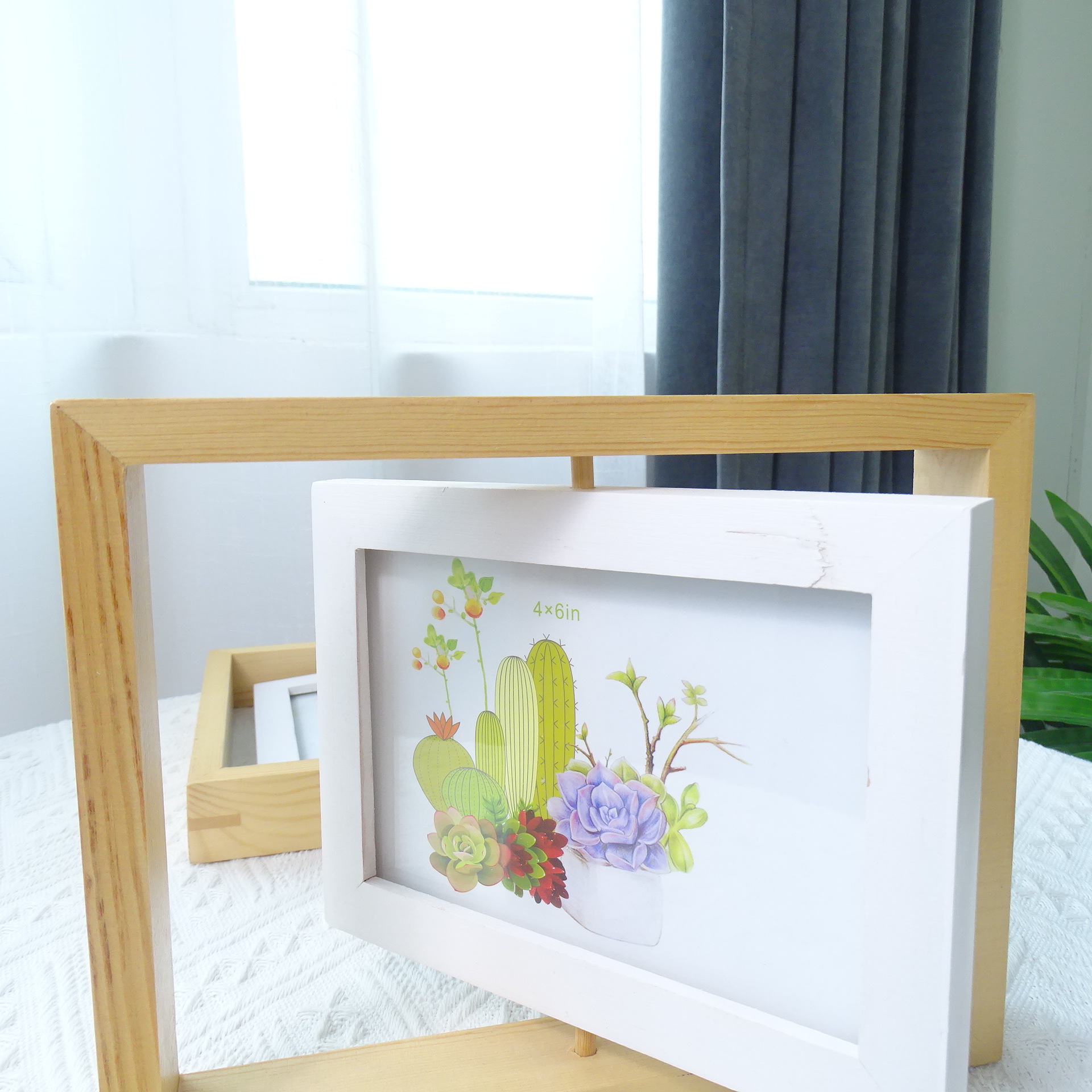 创意旋转双面相框摆台北欧简约木质6六寸照片框桌面摆件厂家批发