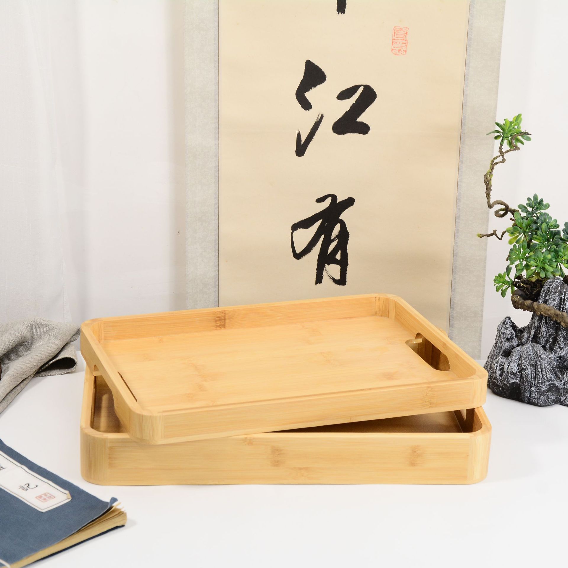 供应长方形竹托盘简约家用酒店餐厅茶具茶盘中式竹制木托盘带把手