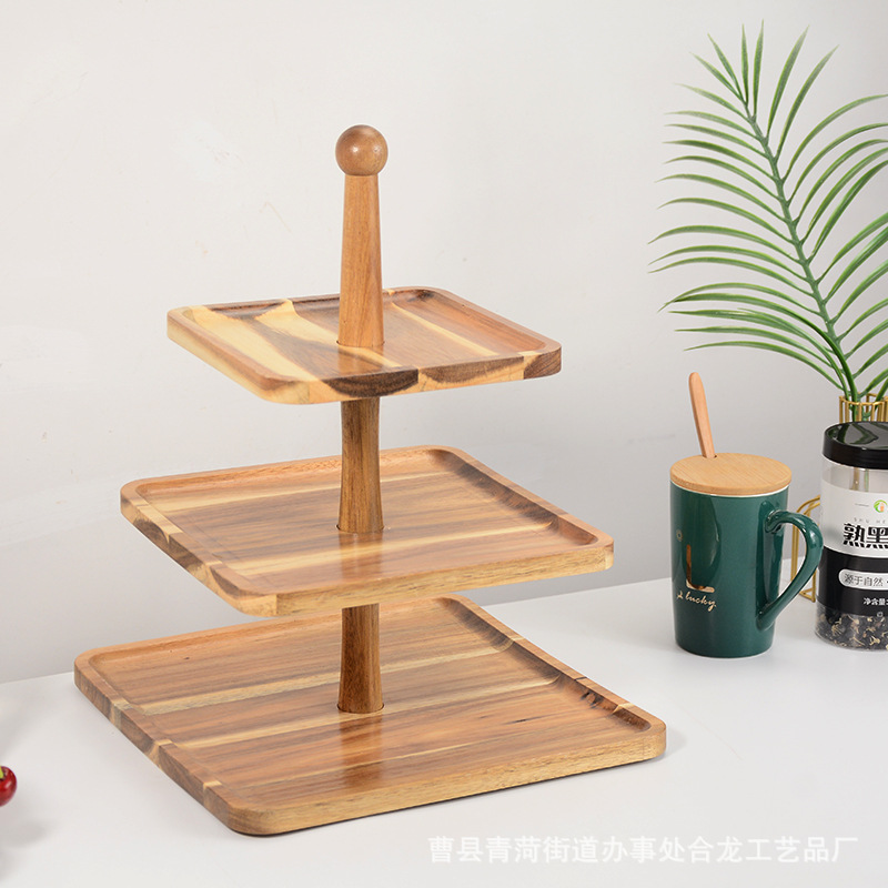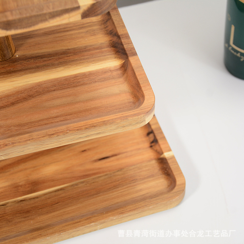 实木托盘三层盘酒店自助餐多层水果小吃点心盘实木水果架子