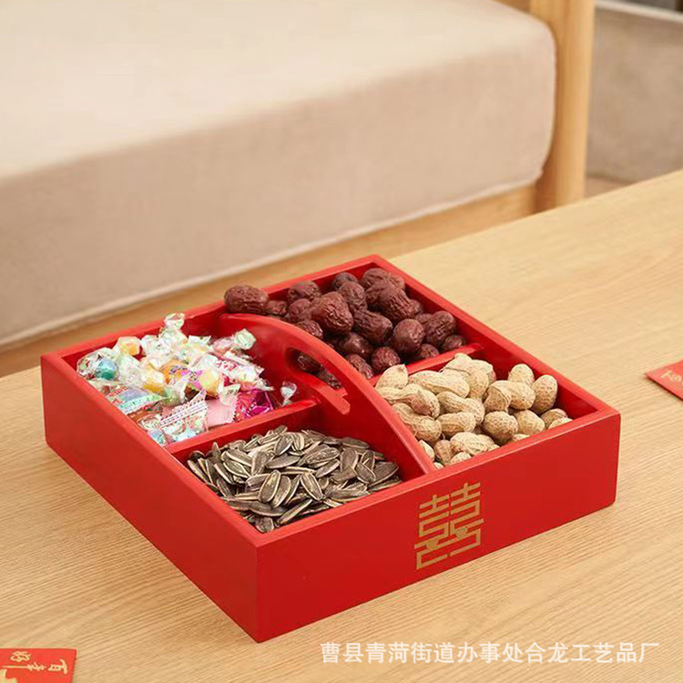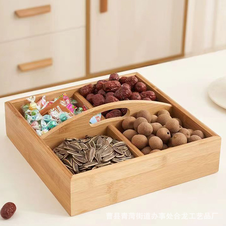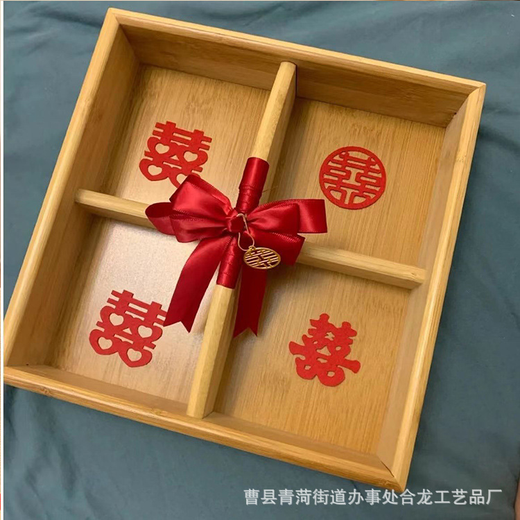 中试干果盒桌面糖果盒结婚干果喜糖收纳木盒竹制中试分格实木盒