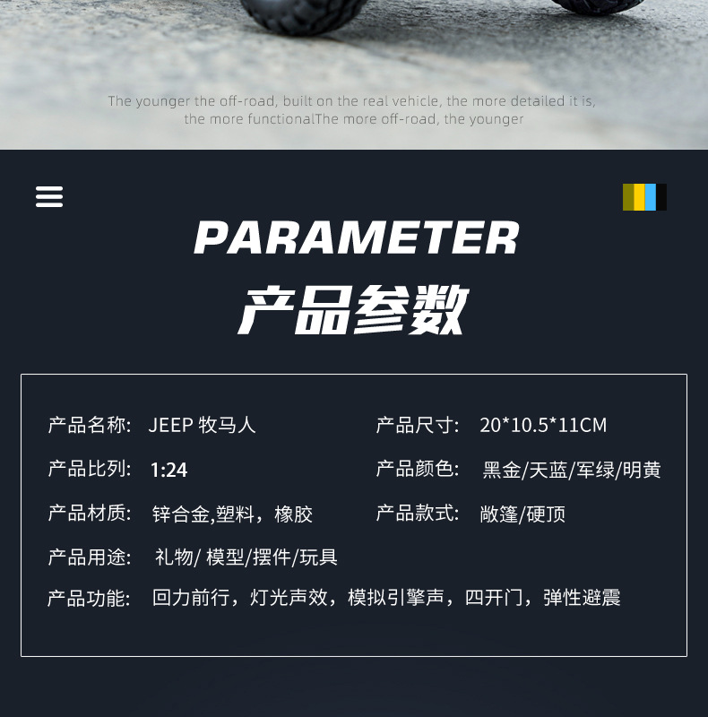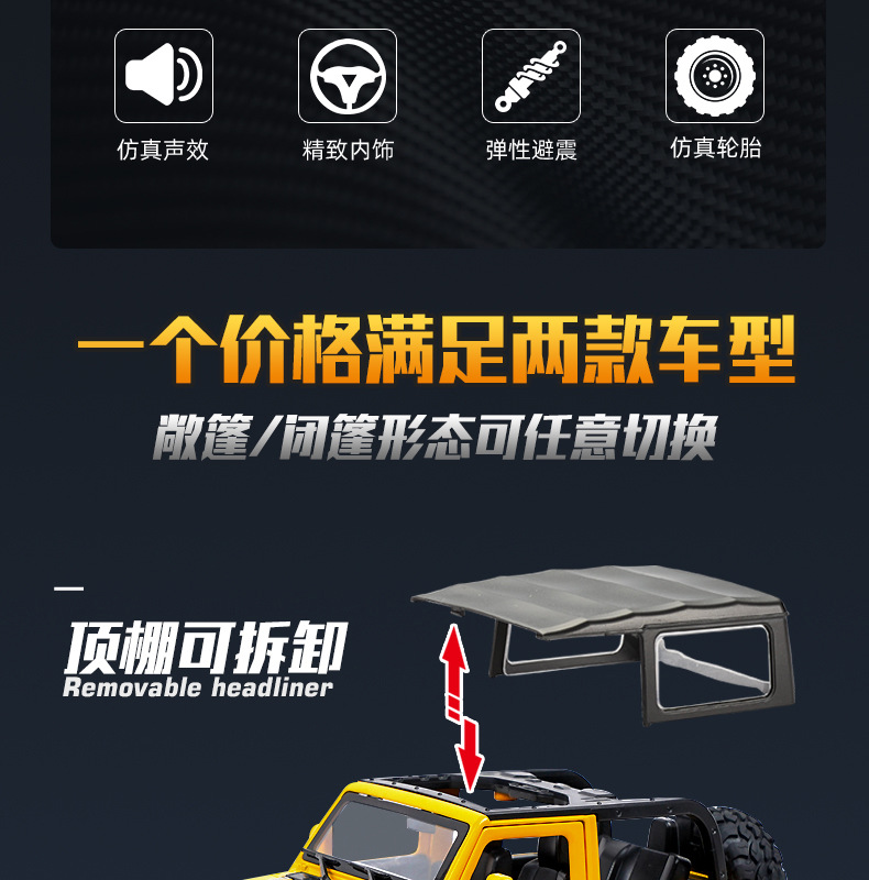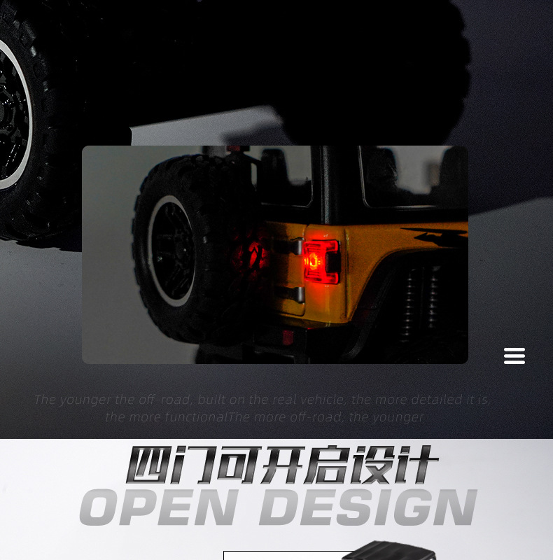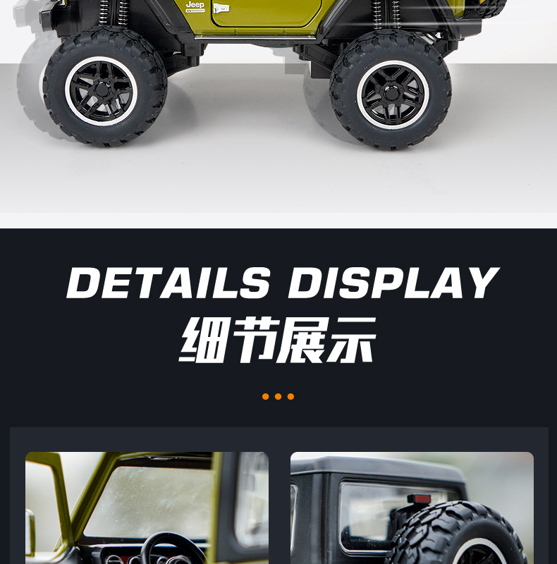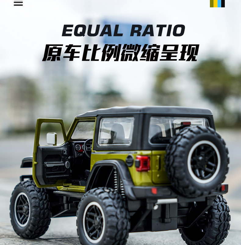 升级版1:24牧马人-卢比肯吉普车大轮仿真合金车模玩具模型收藏版